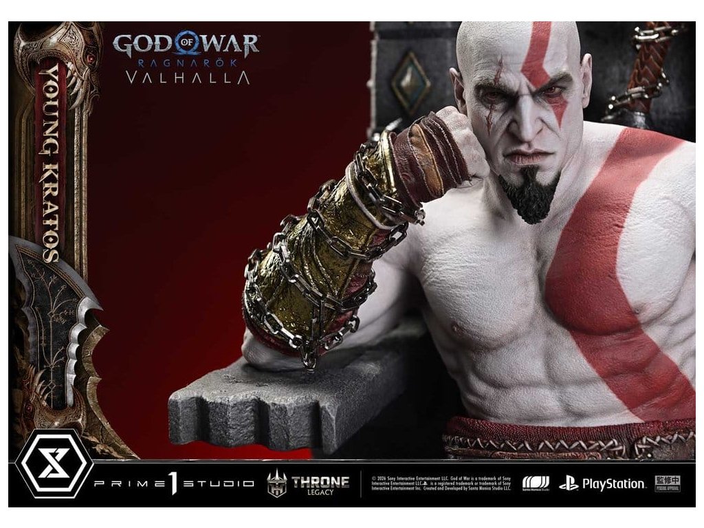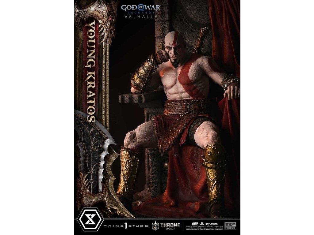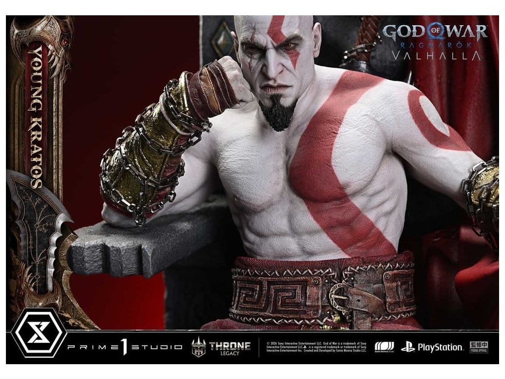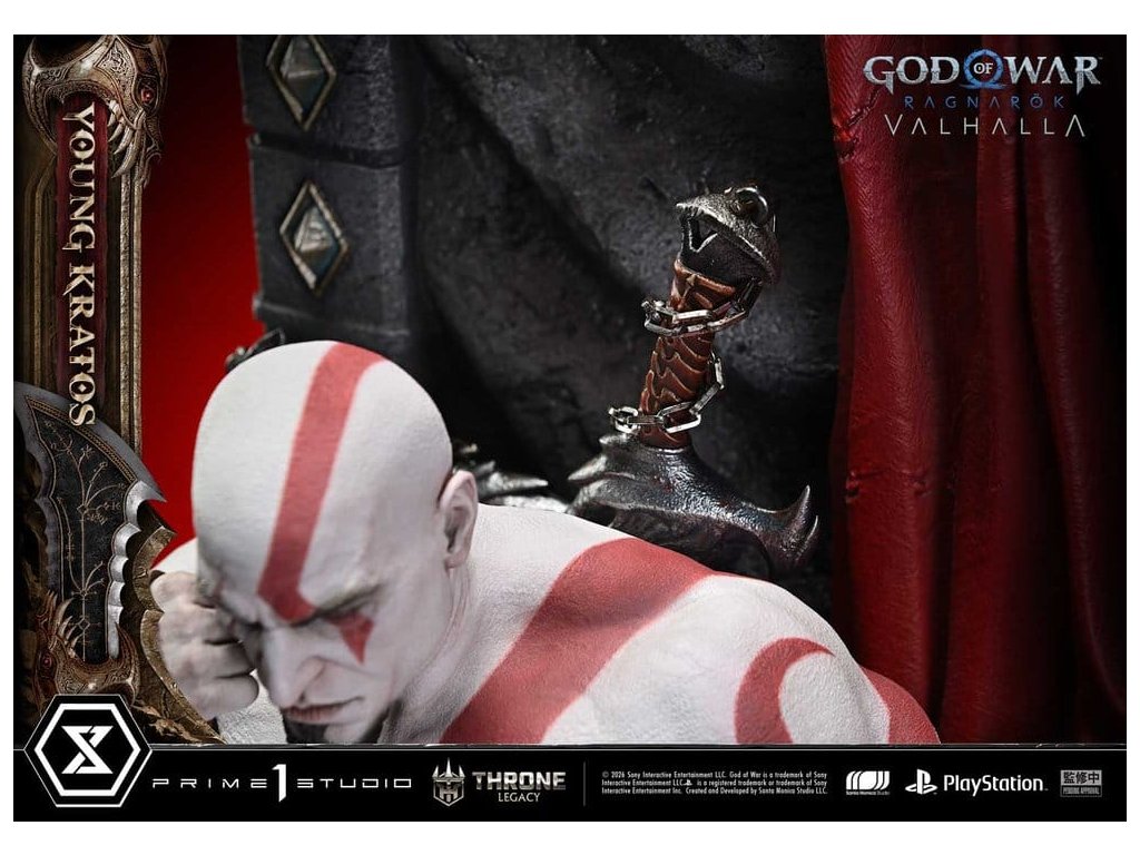 Throne Legacy God of War Series soška 1/3 Ragnarok Young Thyself Kratos 91 cm