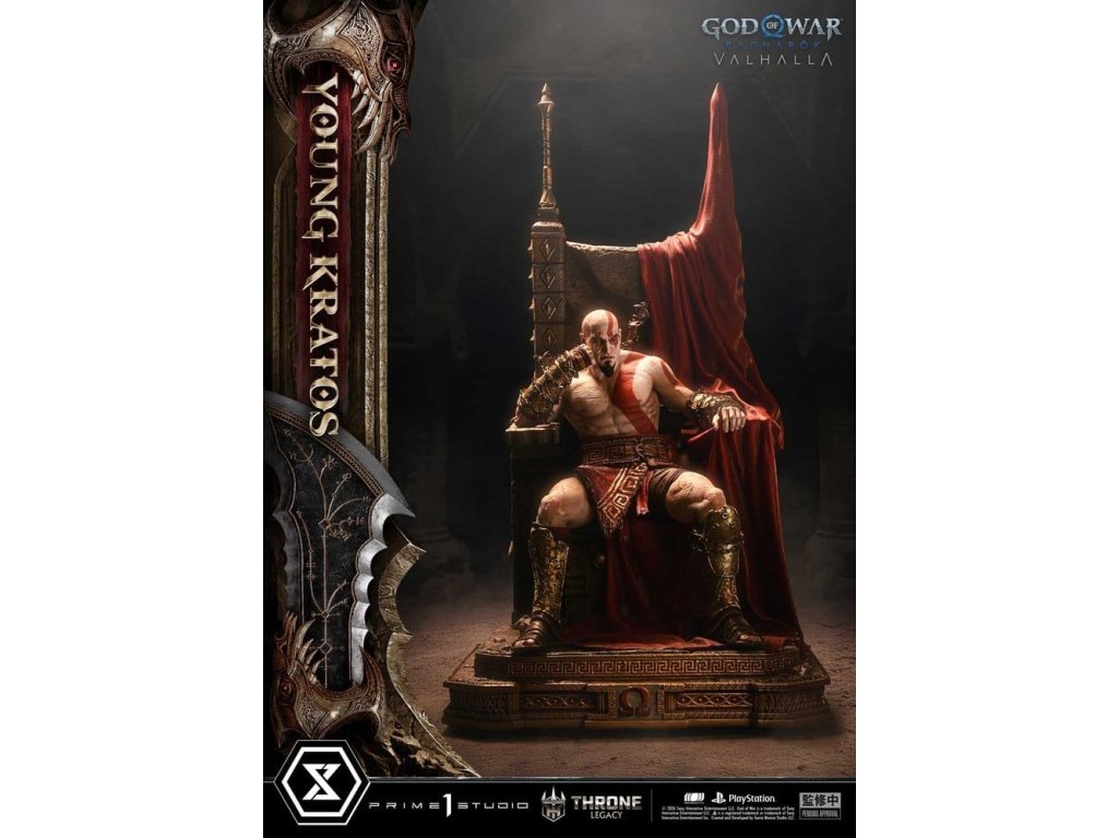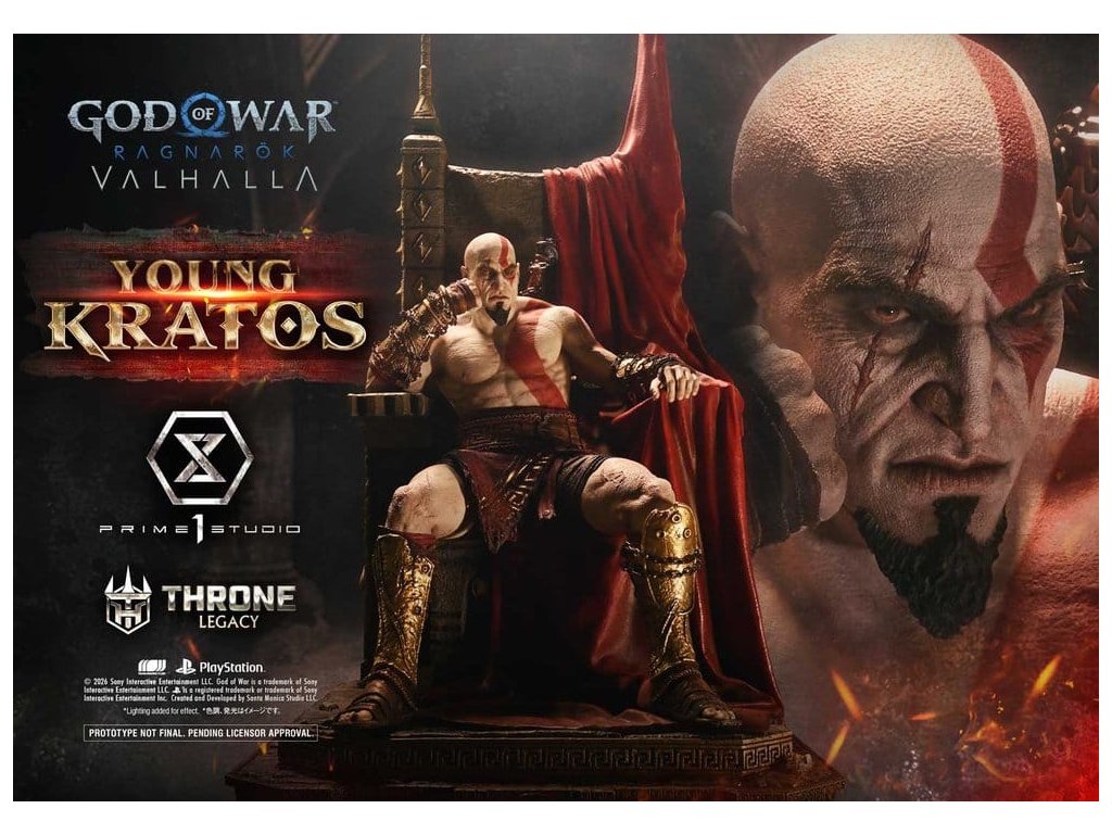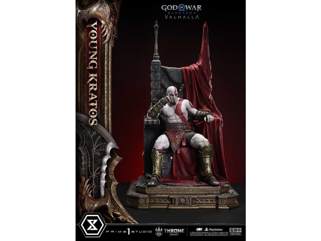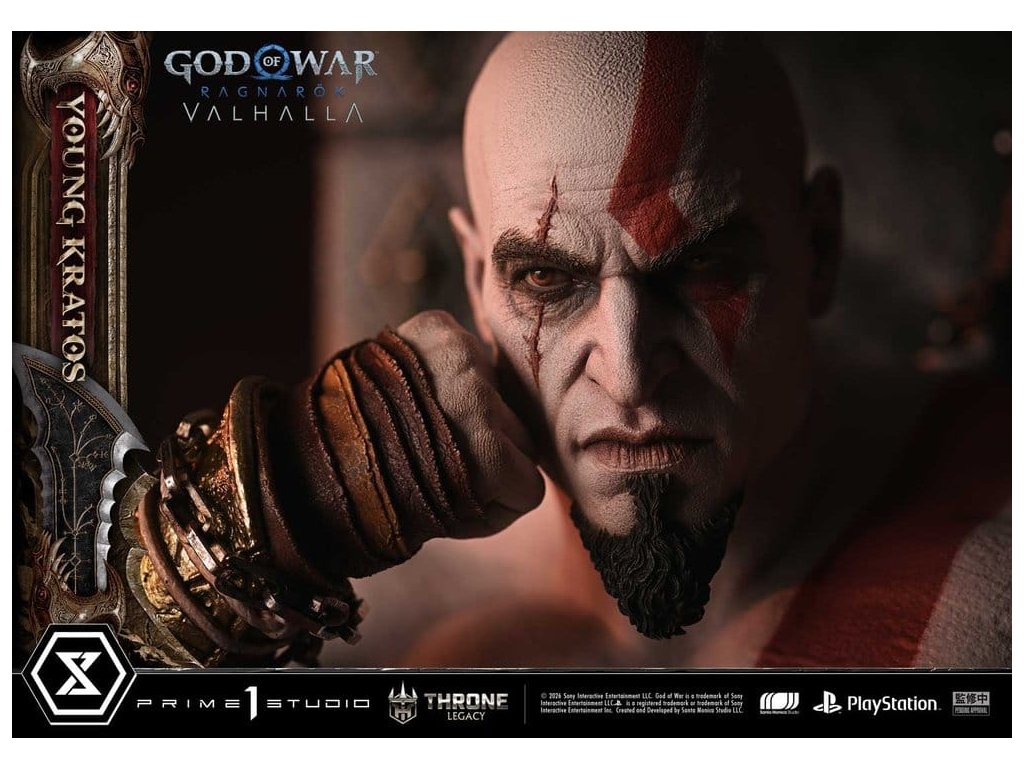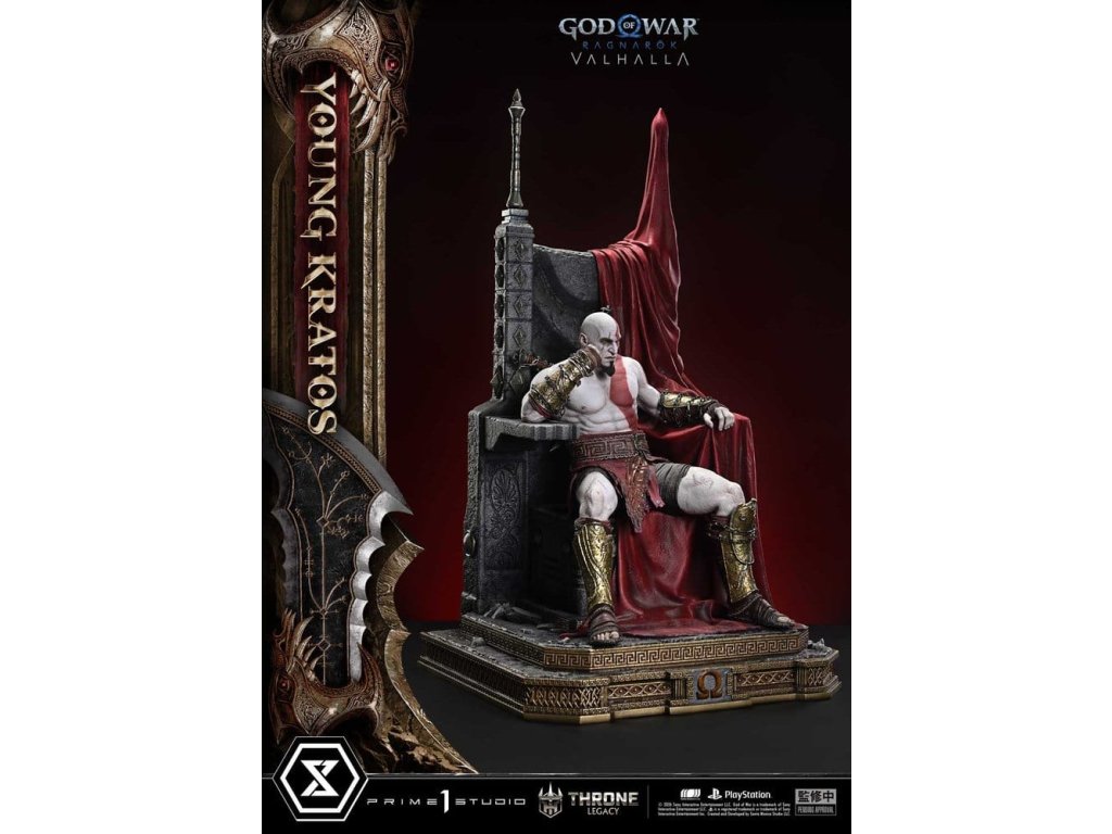 Throne Legacy God of War Series soška 1/3 Ragnarok Young Thyself Kratos 91 cm