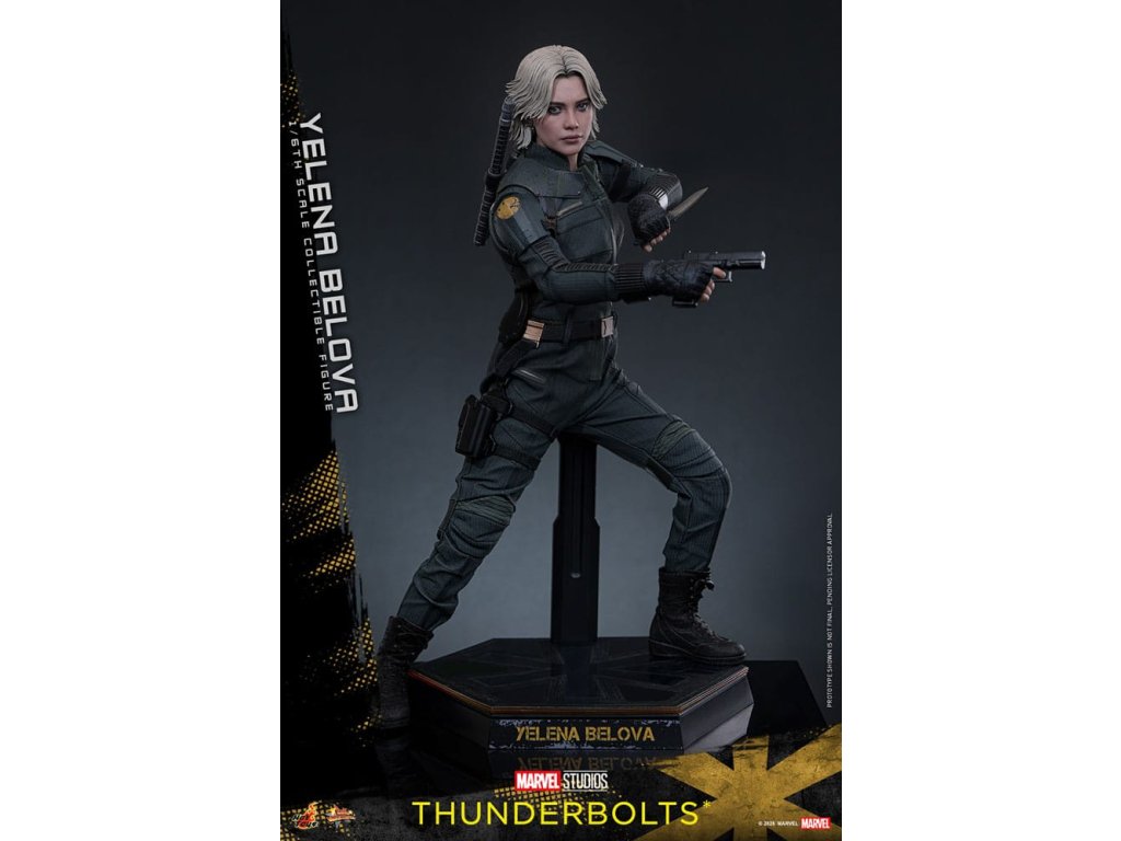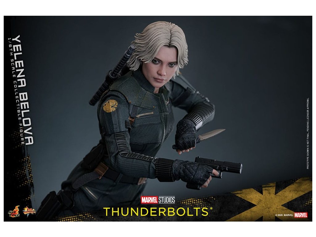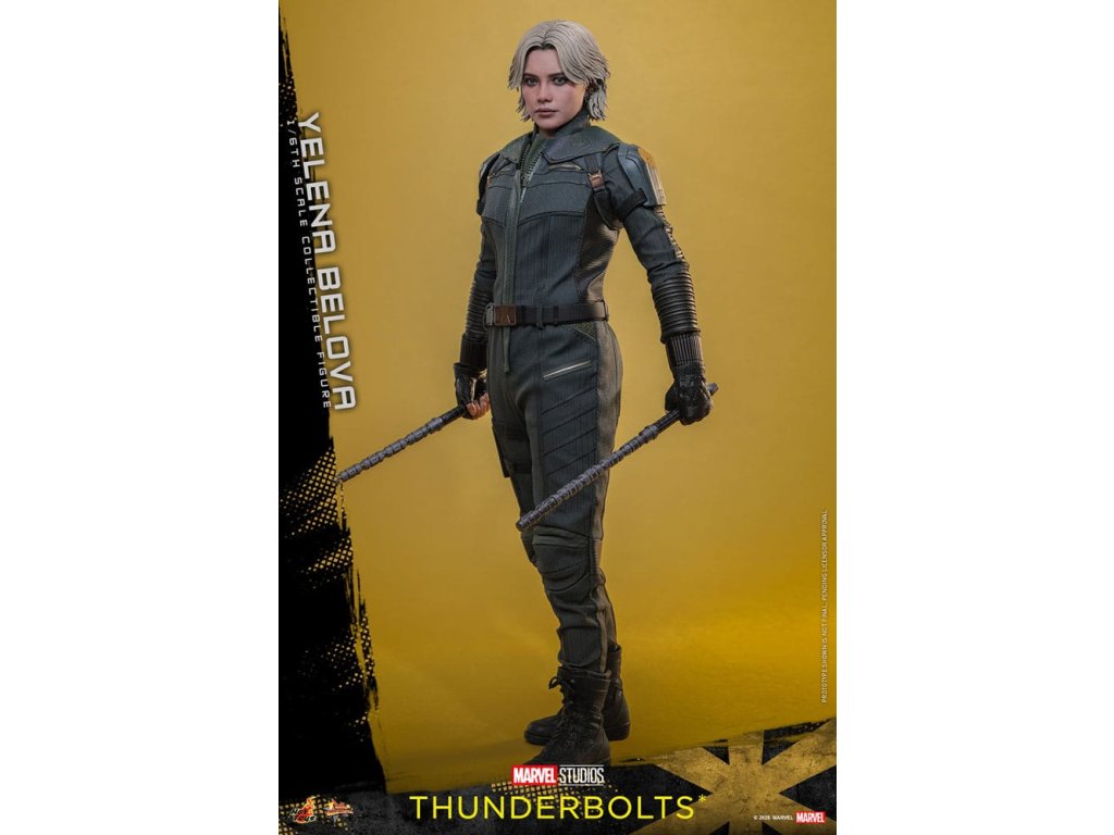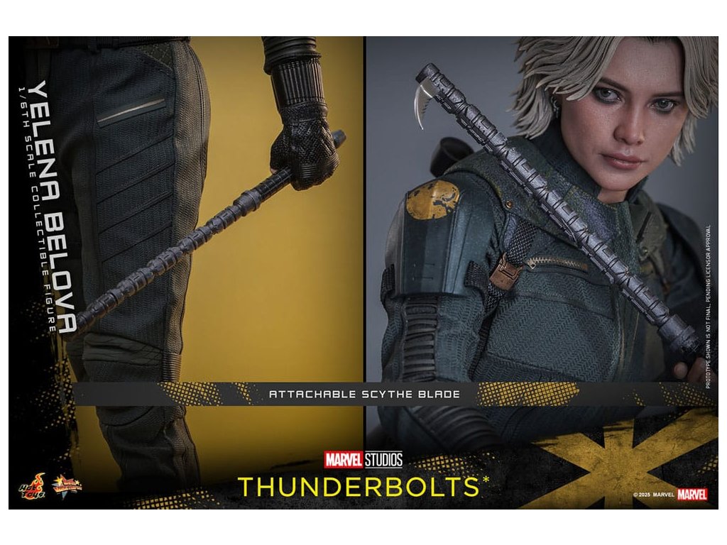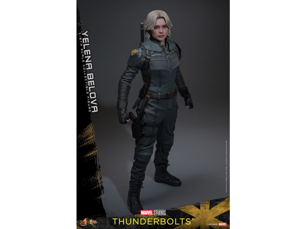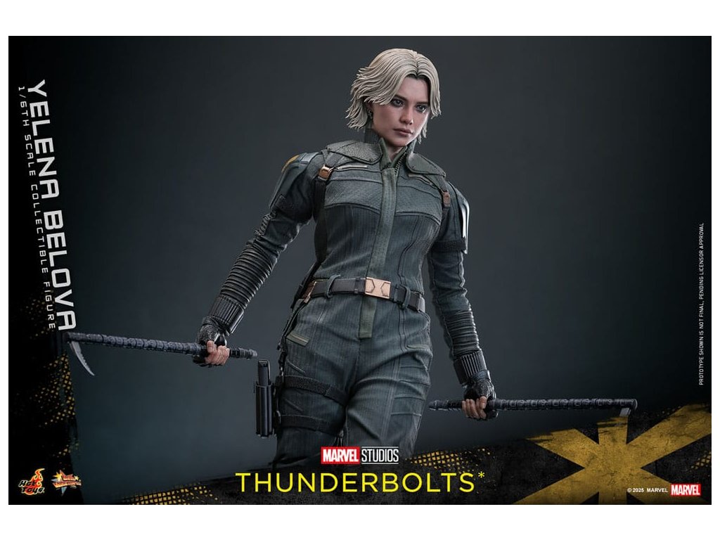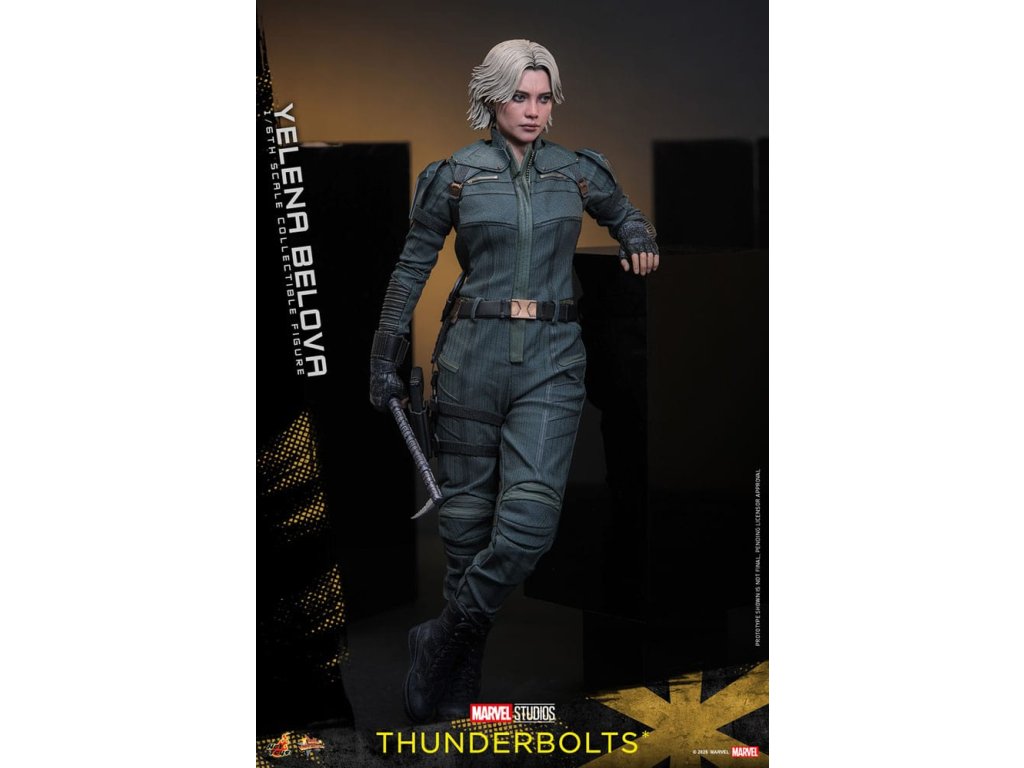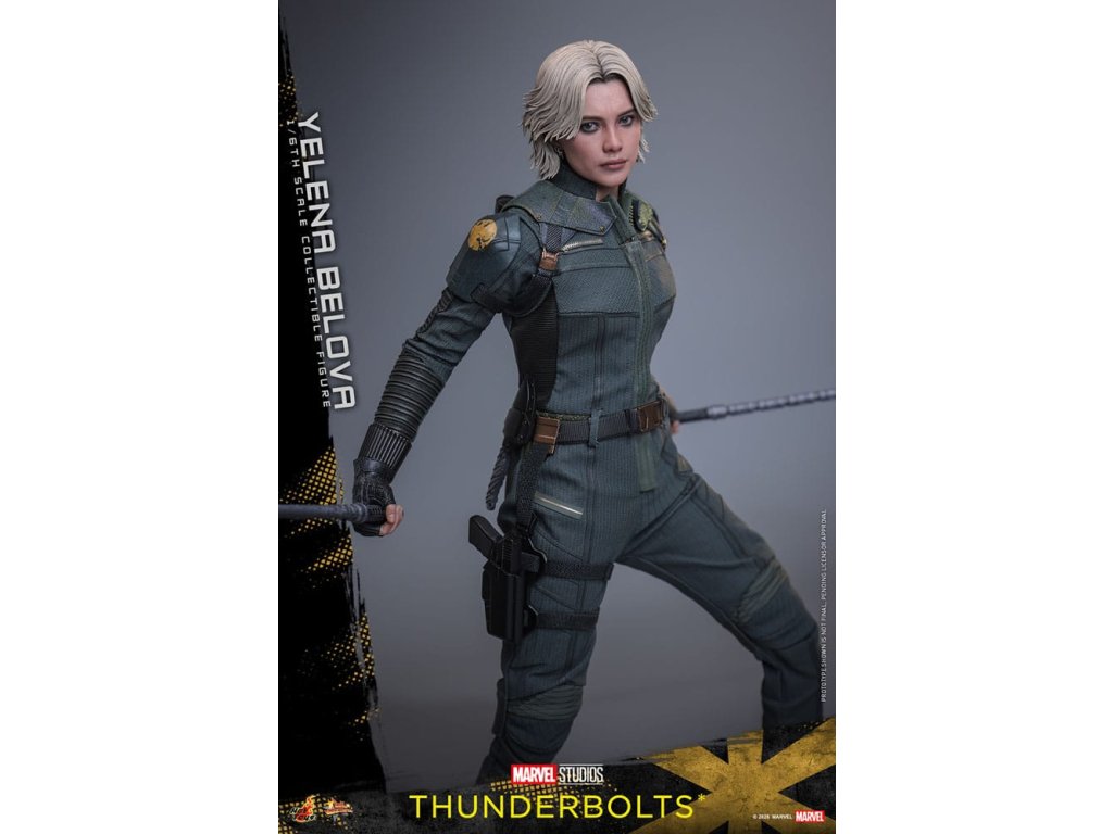 "Sami ho nezastavíme. Nikdo to nedokáže. Ale můžeme to zvládnout společně." - Jelena BělovaV Marvelových studiích Bleskovky*, Jelena Bělova vstupuje do popředí, kde plně využívá svou roli silné operativky s komplikovanou minulostí. Cesta Jeleny od vyškolené vražedkyně z Rudé komnaty k vůdci týmu Bleskovky* (Noví Avengři) ukazuje její odolnost a hloubku. Její postava se vyvíjí skrze zranitelnost, sílu a snahu o odpuštění, což z ní dělá výraznou postavu v Marvelovém filmovém vesmíru.Hot Toys je hrdý na to, že představuje sběratelskou postavičku Jeleny Bělové v měřítku šestina, první členku naší řady Bleskovky*. Tato akční postavička má nově vyvinutou hlavu s přesným filmovým výrazem, detailním make-upem a oddělenými očními bulvami. Její blond vlasy jsou přesně vypracované, zachycující podobu postavy na obrazovce. Bojový kostým Jeleny je znovu vytvořen s mimořádnou pozorností k detailům, s jednodílným taktickým oblekem s ručně šitými detaily, doplněným o ramenní brnění a typický Black Widow's Bite rukáv na obou zápěstích. Její vybavení je stejně smrtící, jako je ikonické, včetně krátkých obušků a dlouhých obušků s připojitelnými kosovými čepelemi, spolu s pistolí a bojovým nožem pro blízké souboje. S devíti vyměnitelnými rukama pro různé pózy, od uvolněných postojů po gesta připravená k akci a typické superhrdinské přistávací pózy, tato novinka nabízí neuvěřitelnou flexibilitu zobrazení pro dynamické a výrazné pózy.Sestavte Nové Avengry s touto pečlivě vytvořenou sběratelskou postavičkou Jeleny Bělové v měřítku šestina.
