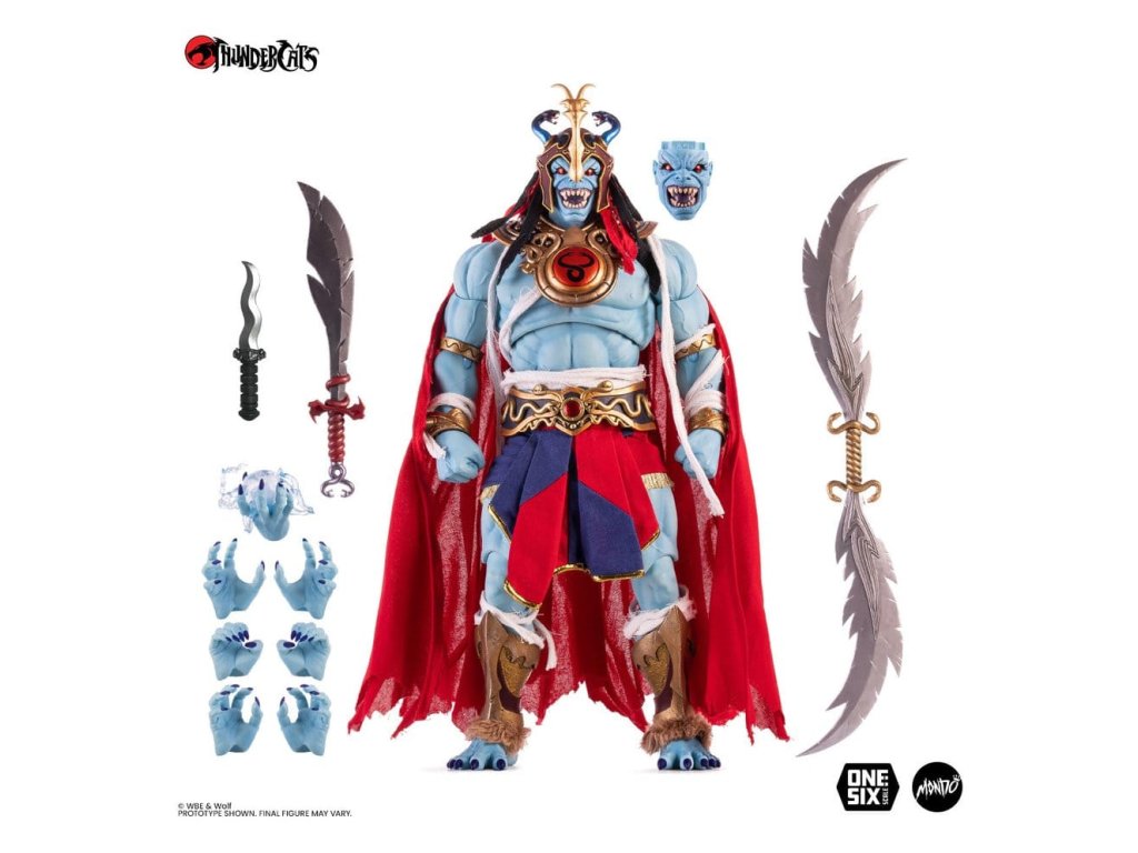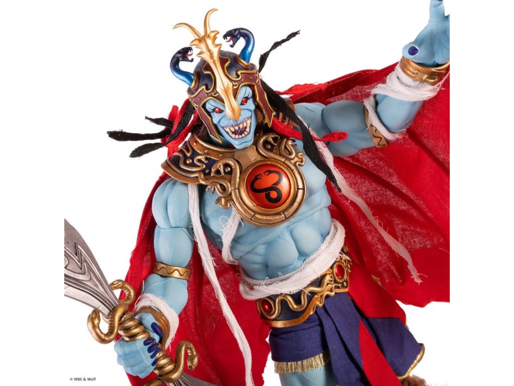 Z 'ThunderCats' přichází tato vysoce detailní akční figurka. Měří přibližně 30 cm na výšku a je dodávána s příslušenstvím a vyměnitelnými díly v tištěné krabici. Produkt obsahuje - Figurka Mumm-Ra - Portrét s úsměvem - Rozzlobený portrét - Portrét v brýlích na helmě - x4 Páry rukou - Ruka s mocnou koulí - Helma - Koule Seti - Klasický meč - Klasický nůž - Meč Plun-Dar - Stojan na figurku.