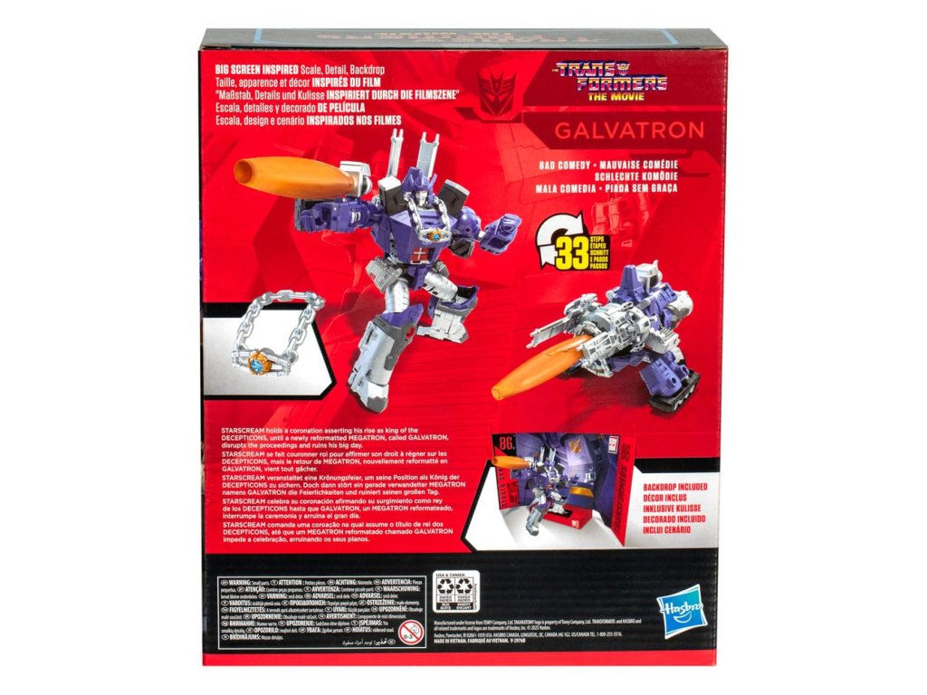 Přineste epickou akci z filmů o Transformers z velkého plátna do vaší sbírky s akční figurkou Galvatron ze série Transformers Studio Series, která je inspirována filmem Transformers: The Movie! Hračky Transformers Studio Series jsou sběratelské akční figurky s detaily a doplňky inspirovanými filmy. Figurka se přeměňuje z robota na galaktické dělo v 33 krocích a nabízí článkovanou hlavu, ruce a nohy pro úžasné akční pózy. Je vybavena 3 děly, které se dají připojit v obou módech, a Matrixem vedení, který lze zavěsit kolem krku figurky. Hledejte další sběratelské figurky Transformers Studio Series pro vytvoření sbírky inspirované filmem (prodávají se samostatně, podléhá dostupnosti)!