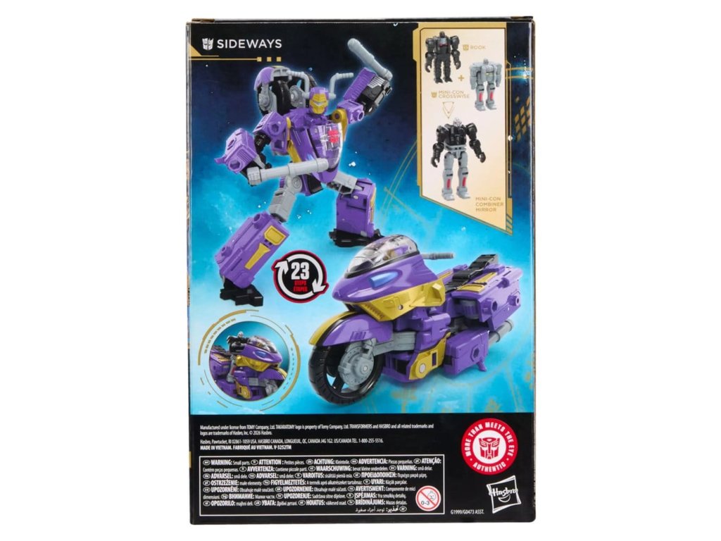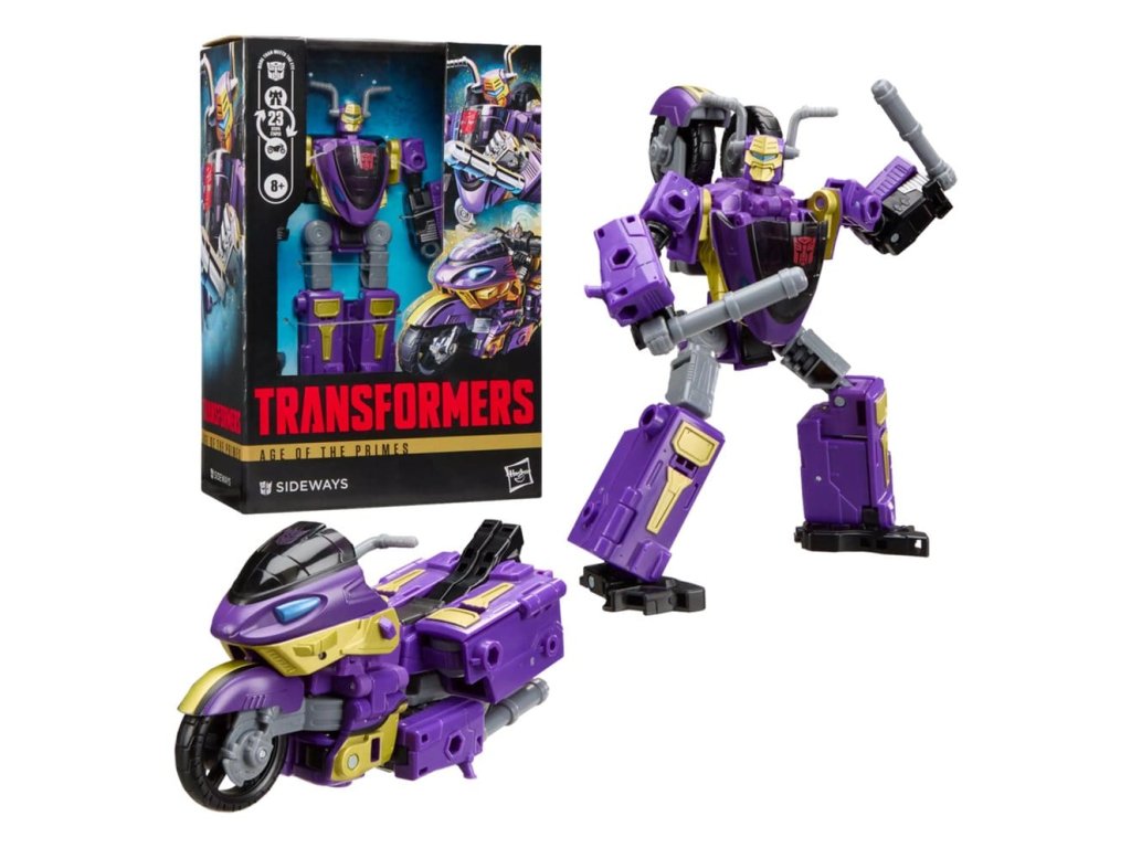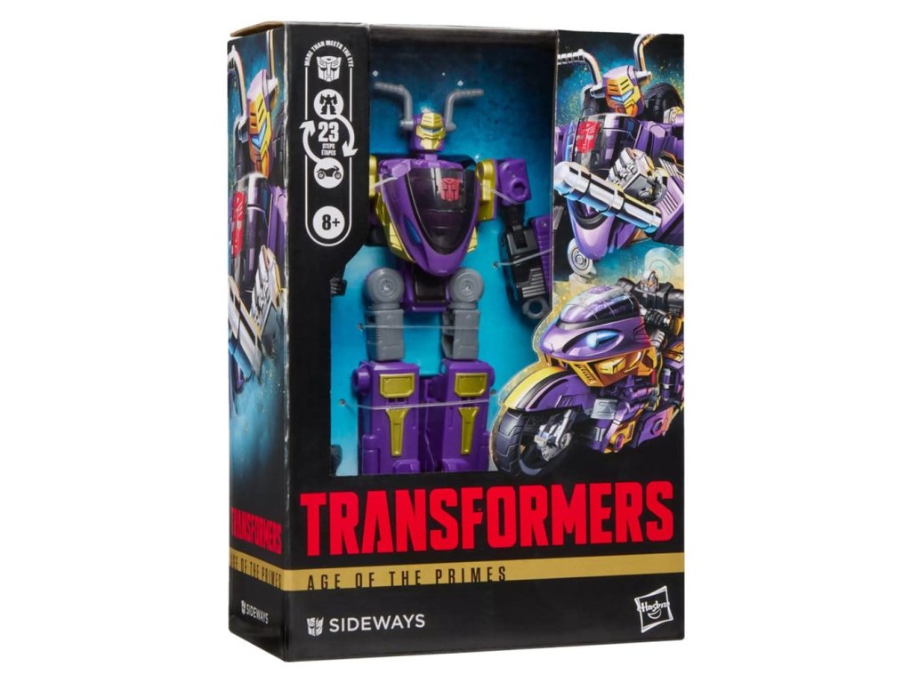 Prožijte epický vesmír robotů Transformers s hračkou Transformers Sideways! Tato 14,5 cm silueta Voyager Class se přemění z akční robotické figurky na motocykl za 23 kroků a je dodávána se 2 figurkami Mini-Con, které se spojí a vytvoří Mini-Con Combiner Mirror, který může jezdit na motorce. S detailními pozicemi a připevnitelnými doplňky ve formě výfukové trubice je tato akční figurka Transformers úžasným doplňkem jakékoli sbírky. Sledujte další sběratelské hračky Transformers Age of the Primes (prodávají se zvlášť, podléhají dostupnosti) s postavami jako The Thirteen Nexus Prime, The Thirteen Liege Maximo, Maximal Big Convoy a dalšími, abyste vytvořili řadu, která je – více než se na první pohled zdá.