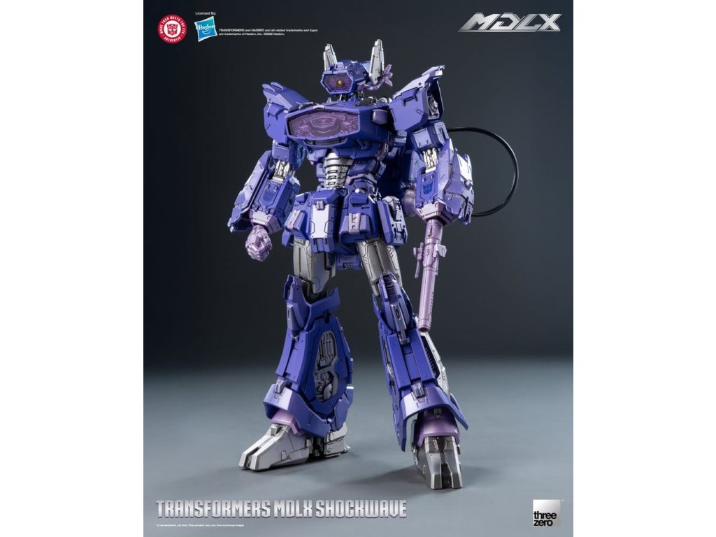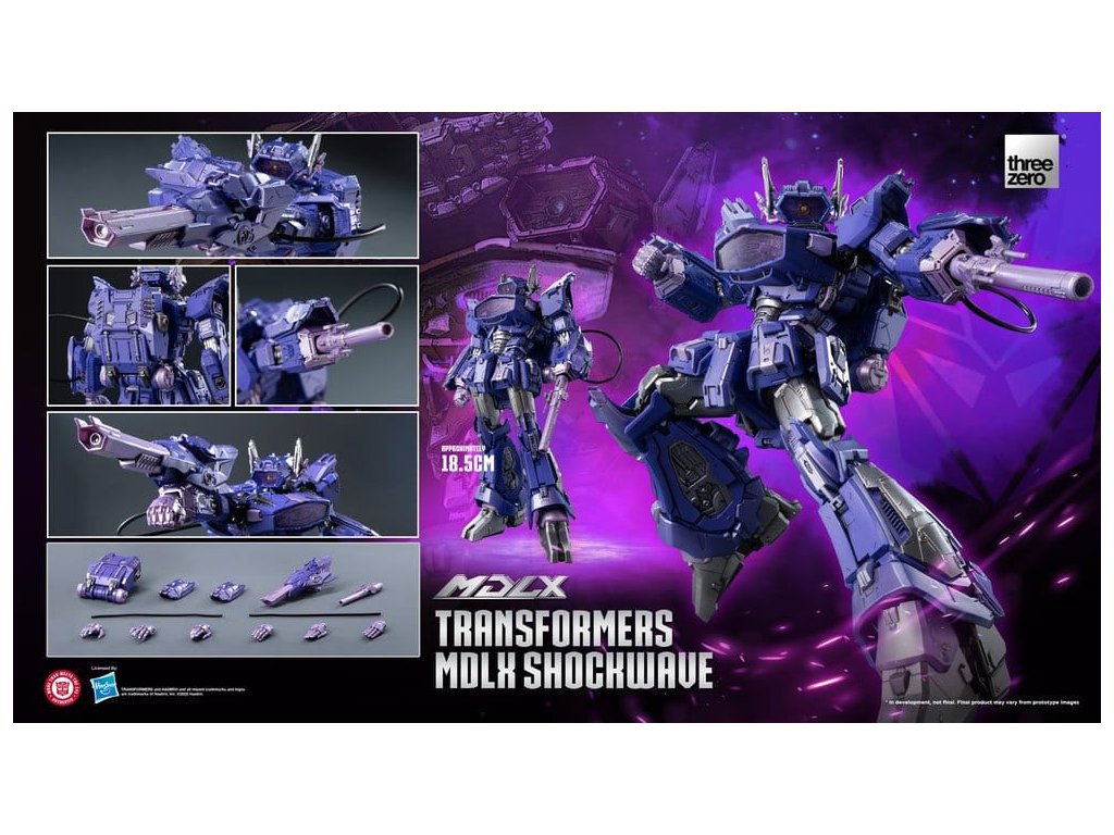 Společnost threezero s hrdostí představuje Vojevůdce Deceptikonů - MDLX Shockwave! Redesignováno pod taktovkou uměleckého ředitele společnosti threezero Kelvin Sau, tato figurka dokonale slučuje klasickou siluetu G1 s hyper-detailním mechanickým designem. MDLX Shockwave má nově navržený a detailní vzhled, který dokonale zachycuje jeho chladný mechanický půvab. Jeho okénko na hrudi a oblast kolem jeho ikonického monooku je vytvořena z průhledného materiálu, aby vystavila precizní vnitřní mechanické detaily, které všechny doplňují signature weathered nátěry od threezero. Stojí přibližně 18,5 cm (7,3") vysoký, figurka využívá unikátní rám ze slitiny zinku a plastu technické kvality s přibližně 55 body artikulace, který dokonale vyvažuje vysokou poseability, odolnost a solidní hmatový pocit. Co se týče zbraní a příslušenství, MDLX Shockwave je vybaven nově navrženým Hyperflux Cannonem. Ten může být vyměněn mezi jeho levou a pravou rukou nebo namontován na vnější straně jeho paže, čímž ukazuje svou formidabilní sílu. Batoh je odnímatelný a odnímatelný laserový kanón také může být vyměněn mezi oběma pažemi. Společně se čtyřmi páry výměnných rukou mohou sběratelé snadno znovu vytvořit různé dynamicke sceny. VLASTNOSTI - Oficiálně licencováno společností Hasbro - Přibližně 18,5 cm (7,3") vysoké - Přibližně 55 bodů artikulace - Vysoká artikulace a poseability - Unikátní design s plastovými materiály technické kvality, Zink Die-cast kombinace rámu pro zvýšenou stabilitu a životnost - Redesignovaná verze klasické postavy Transformers - Prémiová nová socha hlavy a detailovaná malba - Jeho prsa a okolí jeho ikonického mono-oka jsou vyrobeny z průhledného materiálu, aby se ukázaly precizní vnitřní mechanické detaily. PŘÍSLUŠENSTVÍ - 1 Hyperflux Cannon - 1 ks odnímatelného batohu - 1 kus odnímatelného laserového kanónu - 4 páry vyměnitelných rukou: dva (2) páry polohovaných rukou, jeden (1) pár pěstí a jeden (1) pár uvolněných rukou Materiály: ABS, POM, PVC a kovové díly. Orientační datum vydání: listopad 2026