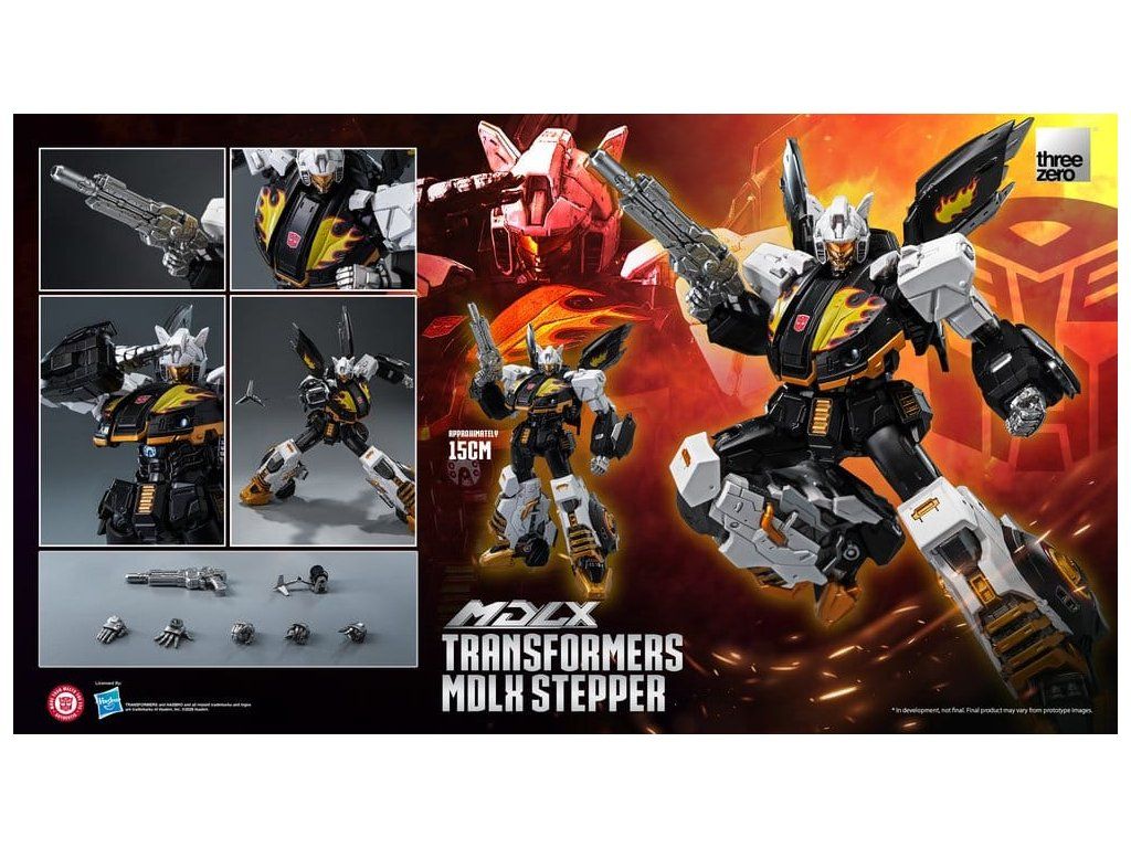 threezero s hrdostí představuje temperamentního, přesto spravedlivě odhodlaného Autobota — MDLX Stepper! Figurína měří přibližně 6 palců (15 cm) a má konstrukci typickou pro threezero z odlévané zinkové slitiny (die‑cast) a technického plastu. Je vybavena přibližně 46 zesílenými vysoce artikulovanými klouby, aby byl dosažen ideální poměr detailního provedení, hmotnosti a konstrukční pevnosti.