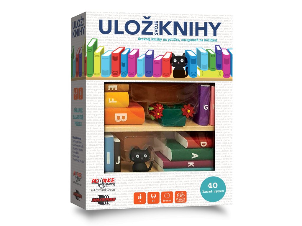 Srovnej knížky na poličku, nezapomeň na kočičku!Hodně knížek, malá polička, k tomu nezbedná kočička. Udrž své knihy v rovnováze, ať polička nespadne! Tato hra je originálním 3D hlavolamem. Úkolem je uložit až 12 různě velkých knih a jednu chytrou kočičku, která se zde zabydlela, tak, aby byla horní polička v ideální rovině. Neboj, bez nářadí nezůstaneš. Pomůže ti vodováha, která je součástí balení hry. Vyřeš všech 40 hlavolamů a ukaž, že jsi nejlepší ze všech.