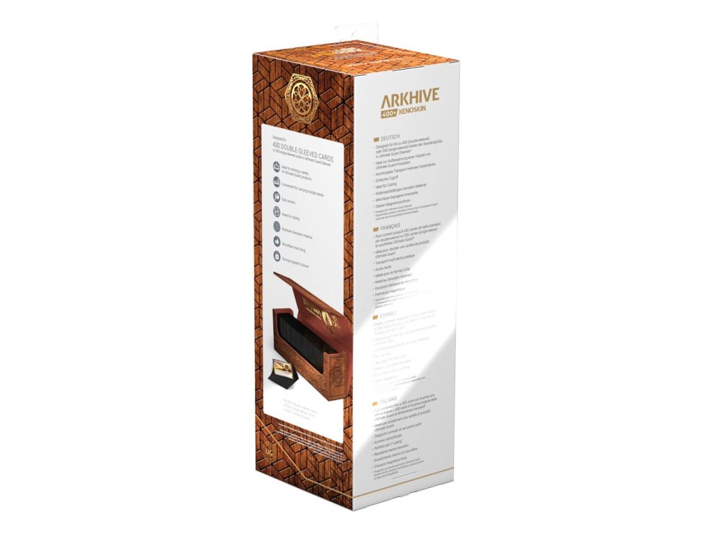 Arkhive 400+ Xenoskin ze série 'Katana: Cesta šóguna' od společnosti Ultimate Guard je ideální box pro hromadné ukládání a přepravu více balíčků karet a/nebo velkého množství karet ze her jako jsou Magic: The Gathering, Pokémon, Lorcana, Flesh and Blood, Yu-Gi-Oh! a One Piece. Odolné pouzdro Xenoskin, vysoce kvalitní vnitřní podšívka z mikrovlákna a silný magnetický závěr zajišťují vynikající ochranu pro až 450 dvojitě obalovaných karet v obalech Ultimate Guard* nebo čtyři balíčky Boulder 100+.