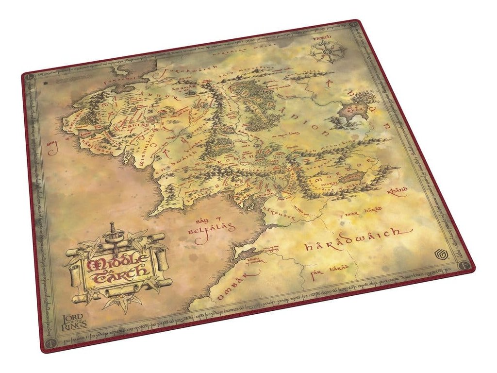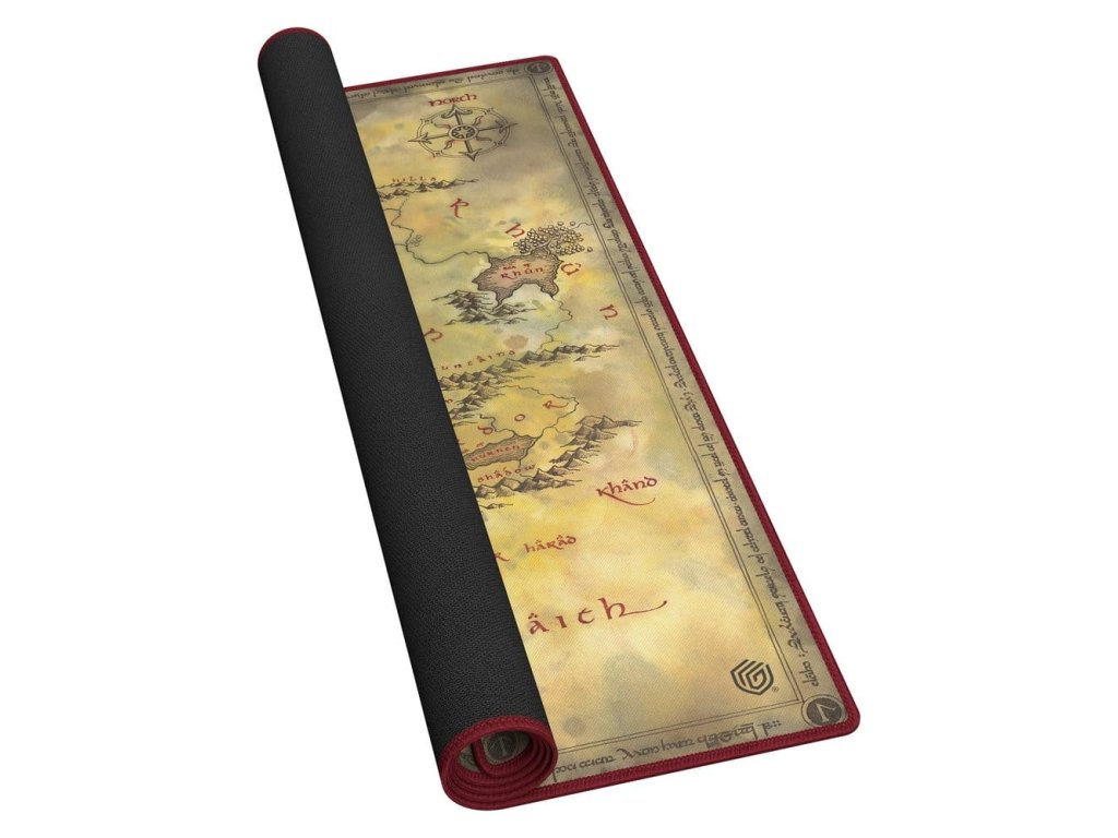 Speciální převelká herní podložka 61x61cm pro dva hráče z oficiální edice Pán Prstenů™ 'Místa Středozemě' od Ultimate Guard chrání karty a obaly během hraní a zlepšuje herní zážitek díky své protiskluzové spodní straně, zatímco prošívané okraje zaručují ještě delší životnost.