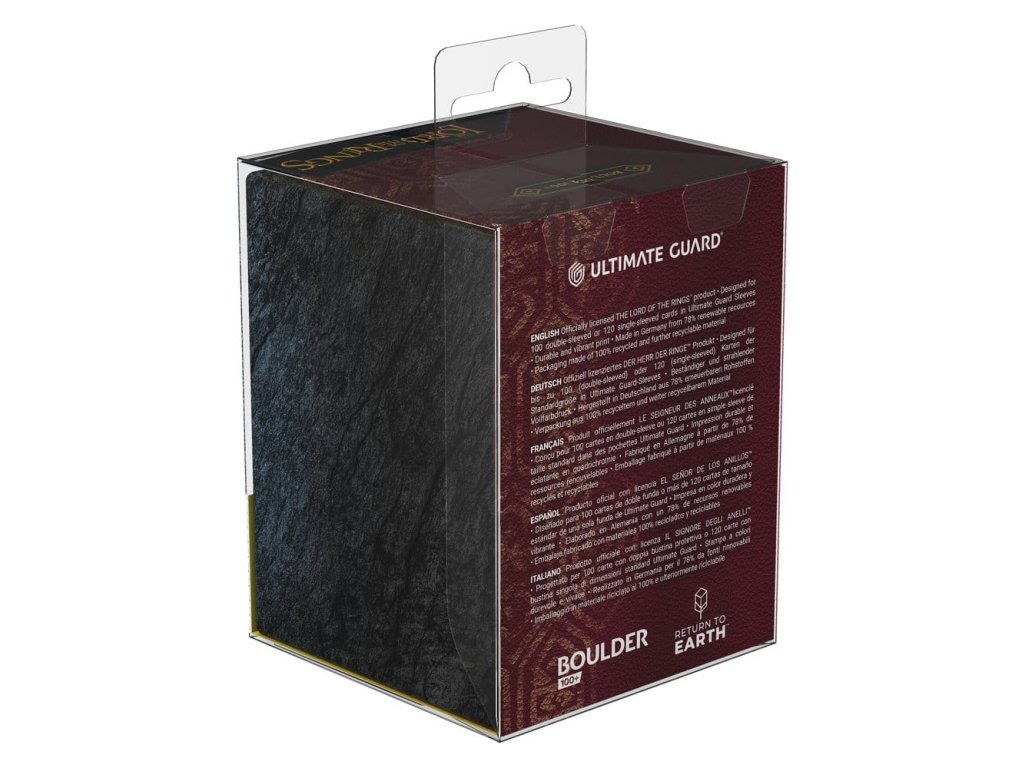 RTE Boulder 100+ je spolehlivé krabička na karty z naší série Návrat na Zemi se silným a živým plnobarevným tiskem. Vyrobeno z 78% obnovitelných surovin a vytištěno v Německu, RTE Boulder 100+ od Ultimate Guard z oficiální edice Pán prstenů™ "Místa Středozemě" může pojmout až 100 dvojitě obalených karet ve svých obalech Ultimate Guard*. Navíc je obal krabičky vyroben z 100% recyklovaného materiálu.
