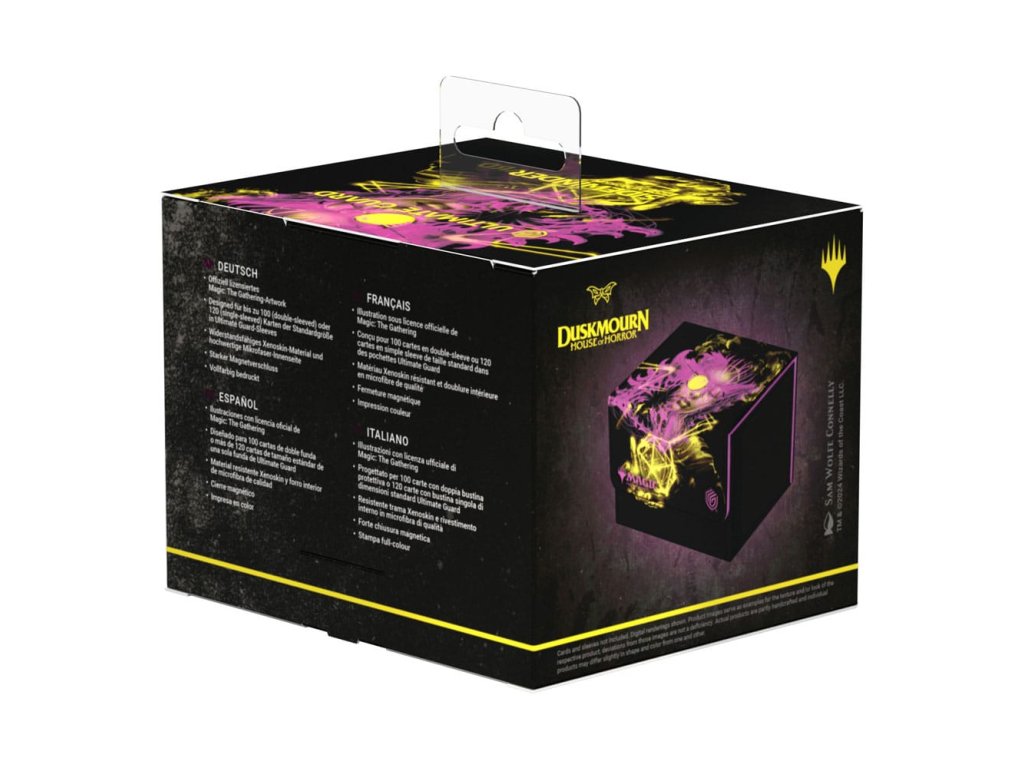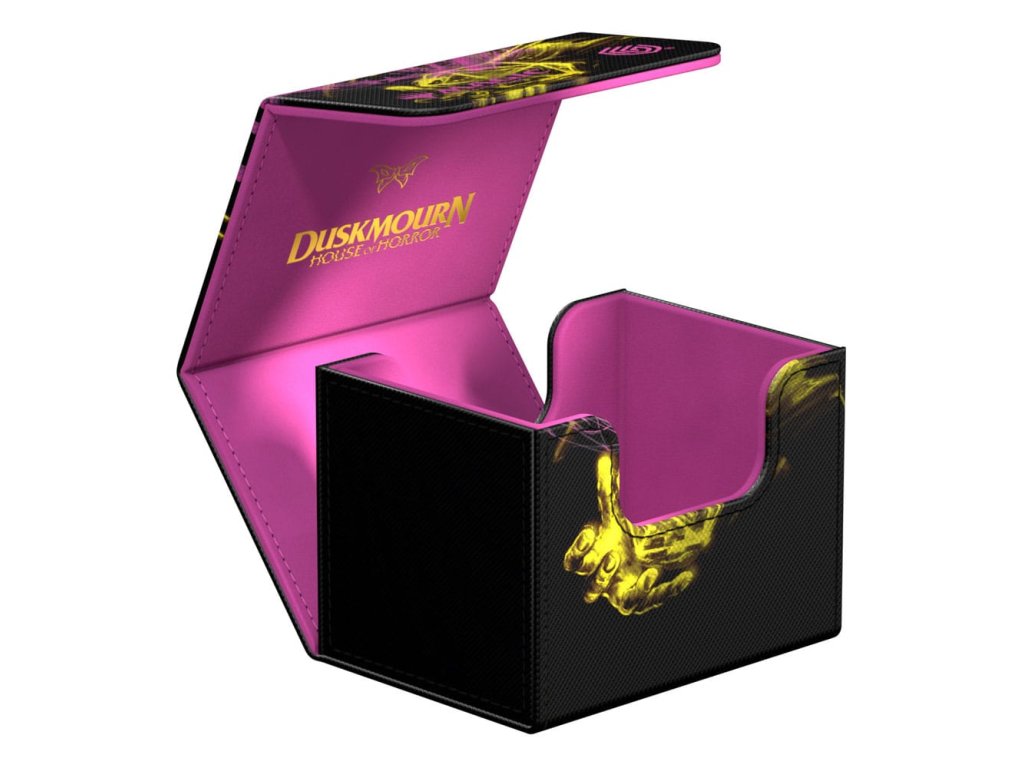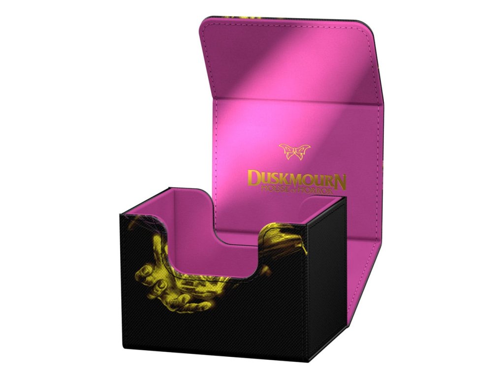 Tajemná dvojitá expozice od Duskmourn: House of Horror nejen potěší v kartách z nové sady Magic: The Gathering, ale také v našich krabicích na karty Sidewinder! Připojíte se k záchrannému týmu kolem postav Tyvar, Zimone, Kaito a The Wandering Rescuer? Budete stát po boku legendárních padouchů v nekonečném strašidelném domě? Nebo si myslíte, že Kona, Rescue Beastie je roztomilá? Volba je na vás! Naše Sidewinder 100+ Xenoskin jsou potištěné v plné barvě s oficiálně licencovaným motivem Magic: The Gathering. Krabice na karty jsou vyrobené z odolného materiálu Xenoskin a mají vysoce kvalitní vnitřní výstelku z mikrovlákna. Sidewinder nabízí prostor pro 100 karet se dvojitým obalem nebo 120 karet s jednoduchým obalem - a dokonale se hodí k Omnihive 1000+ Xenoskin z řady Duskmourn!