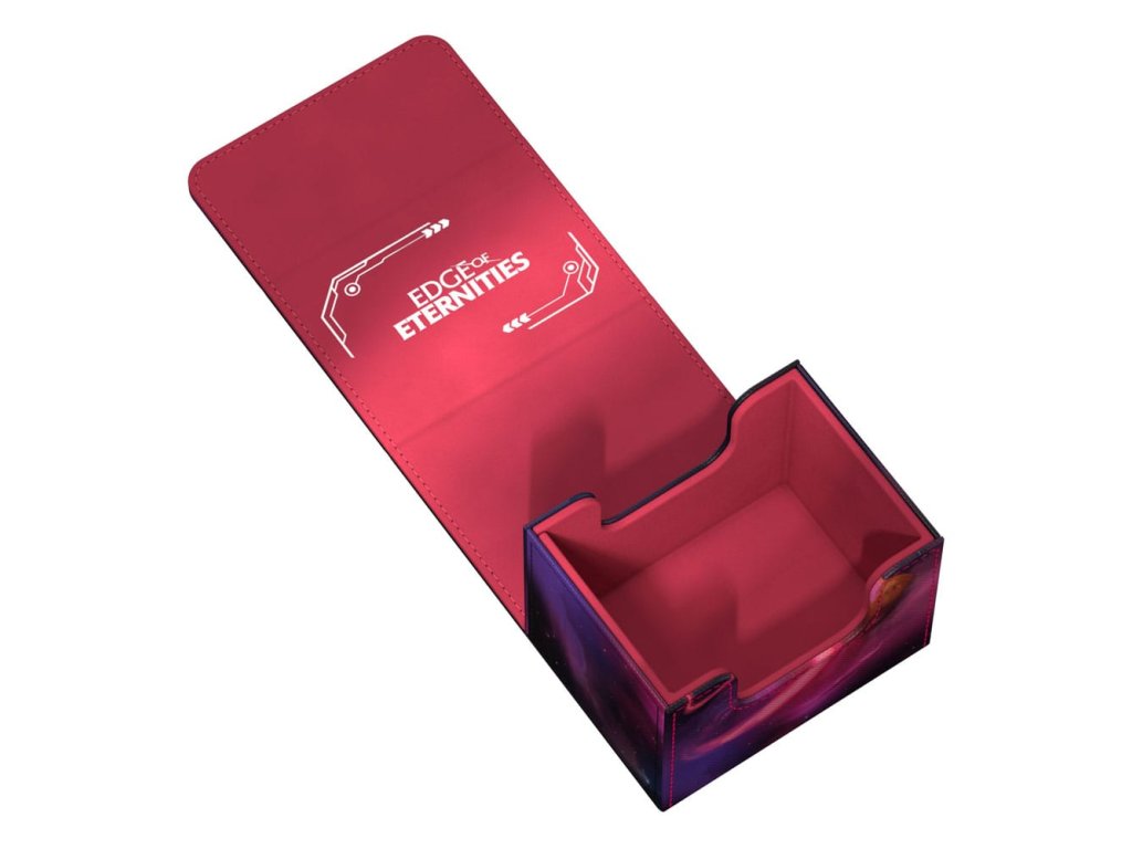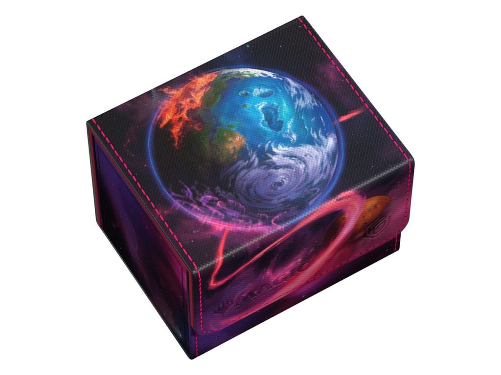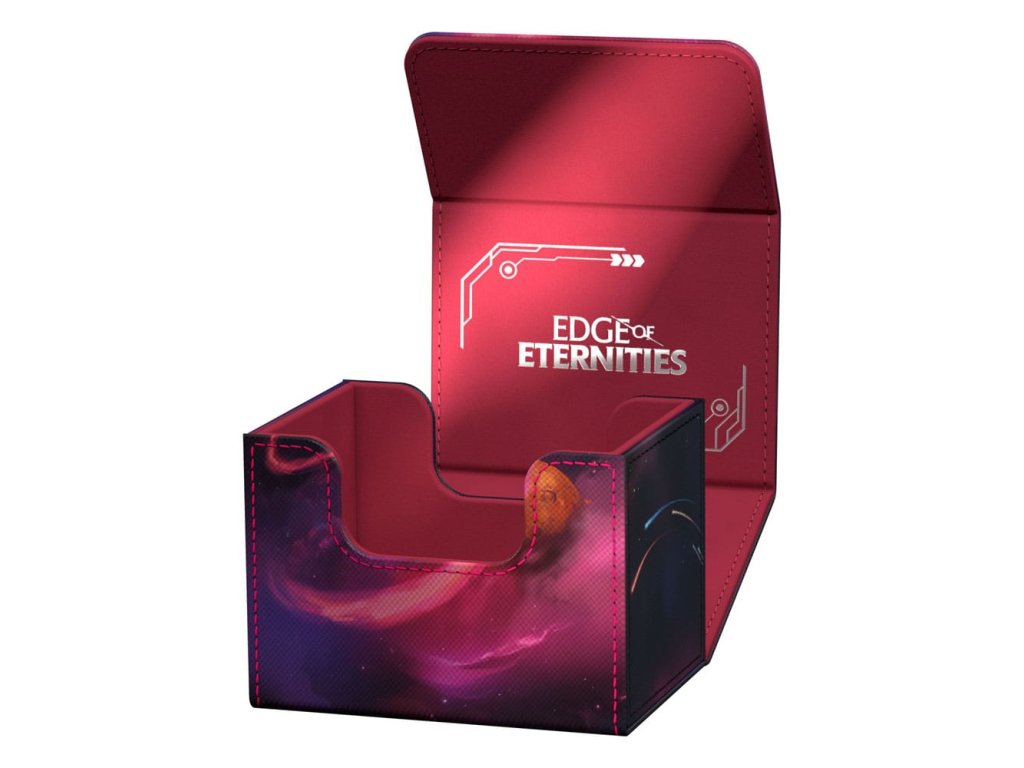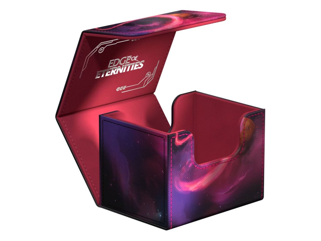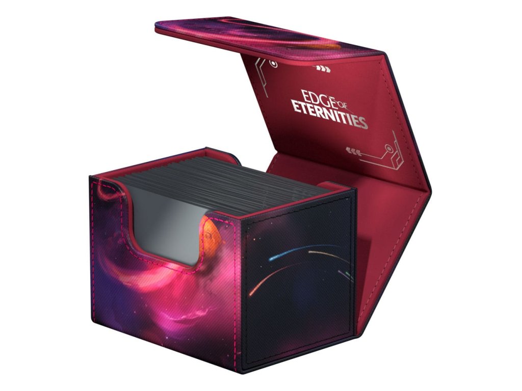 Sidewinder 100+ od společnosti Ultimate Guard, vyrobený z odolného materiálu Xenoskin, pojme až 100 dvojitě obalovaných karet ve fóliích Ultimate Guard a je ideální obal na balíčky karet pro hry Commander/EDH. Je potištěný v plnobarevném provedení s oficiálně licencovanými motivy ze sady „Edge of Eternities“ hry Magic: The Gathering. Obaly na balíčky karet Sidewinder od společnosti Ultimate Guard se svým silným magnetickým uzávěrem a kvalitní mikrovláknovou vnitřní výstelkou jsou bezpečným a spolehlivým místem pro skladování balíčků karet MTG a jednotlivých sběratelských karet.