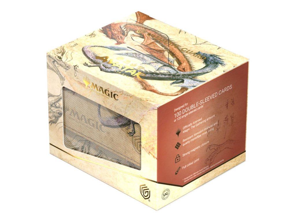 Sidewinder 100+ odolný xenoskin materiál pojme až 100 dvojitě obalovaných karet, které jsou v boxu bezpečně uzavřené díky silnému magnetickému uzavírání a měkčené mikrovláknové vnitřní výstelce. Odolný, vysoce kvalitní povrch Sidewinderu z materiálu Xenoskin je plnobarevně potištěný oficiálně licencovanými obrázky z Magic: The Gathering | Avatar: Poslední vládce větru set.