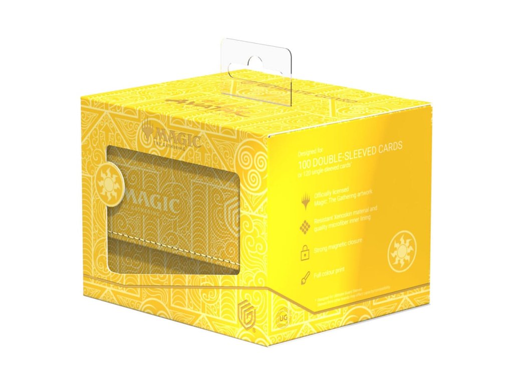 Sidewinder 100+ vyrobený z odolného materiálu Xenoskin pojme až 100 karet se dvouvrstvými obaly, které jsou v krabičce na karty bezpečně ukryté díky silnému magnetickému uzavírání a měkkému mikrovlákennému vnitřnímu vložení. Odolný a kvalitní povrch Sidewindera z materiálu Xenoskin je potištěný v plné barvě oficiálně licencovanými ilustracemi z sady Magic: The Gathering | Avatar: The Last Airbender.