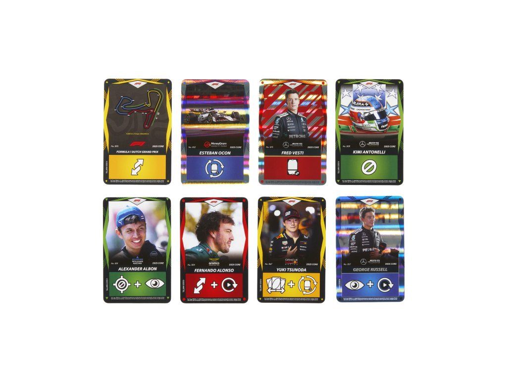 Tradiční hra UNO kombinuje speciální karty "Akční karta elitních jezdců", které zobrazují jezdce, auta i helmy ze světa Formule 1. Zařaďte tyto karty do svého týmu a přidejte tak do klasické hry vzrušující nové akce. Barvy a vzhled výrobku se mohou lišit.