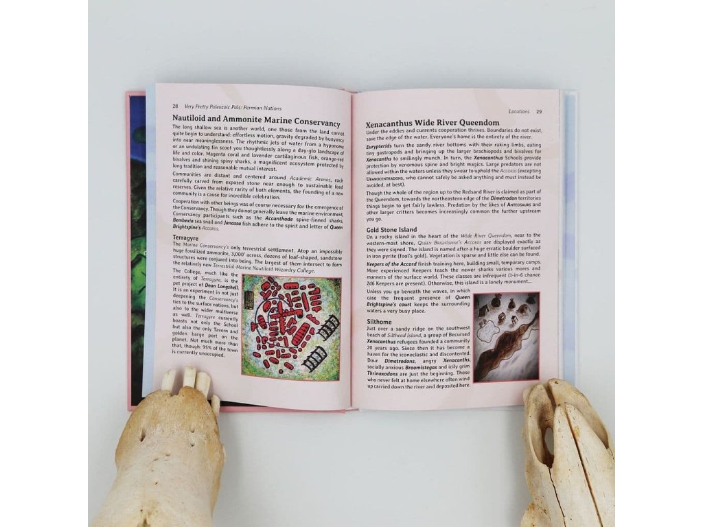 Velice netradiční rozšírující modul pro RPG Troika! vás zavede do zdánlivě roztomilé minulosti plné dinosaurů. Kniha v anglickém jazyce. Fabulous Dimetrodons defined wetland fashion. Behorned Xenacanthus sharks deftly negotiated sacred treaties. Nautiloids and Ammonites plumbed the deepest of philosophical depths. Thrinaxodons and Broomistegas cooperatively developed sophisticated aquacultural techniques. These paleozoic folks learned well the values of peace, respect, cooperation and communication. Then, or course, Humans came and the big bullies just took whatever they wanted. Very Pretty Paleozoic Pals: Permian Nations is a setting, or Sphere, for Troika! RPG. And incredibly ancient and positively adorable fantasy land.Doplňkové parametry