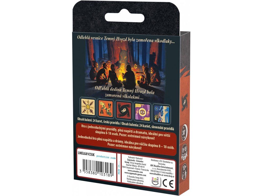 Karetní párty hra Vlkodlaci z Temného Hvozdu pro 8-18 hráčů vhodná od 10 let od společnosti Asmodee v českém a slovenském jazyce.