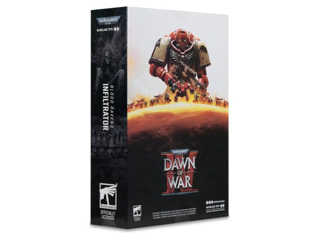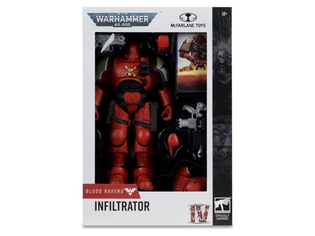 Blood Ravens jsou Kapitola Vesmírných mariňáků zahalená tajemstvím. Ačkoli jejich původ není známý, jejich statečnost je nesporná. Jsou to bystří válečníci, rozvážní ve svých taktikách, kteří k poražení nepřátel využívají předvídání a věštění. - Neuvěřitelně detailní figurka v měřítku 7 palců založená na připravované videohře Warhammer 40,000: Dawn of War 4 - Navrženo s ultra kloubováním (Ultra Articulation) až s 22 pohyblivými částmi pro plné možnosti pózování a hraní - Obsahuje 2 náhradní ruce, bolt-karabinu, bolt pistoli, odnímatelný Power Pack, ilustrační kartu a podstavec pro vystavení - Figurka je vystavena v okénkovém balení s motivem Warhammer 40,000: Dawn of War 4 - Sbírejte všechny figurky McFarlane Toys Warhammer 40,000. Velikost: 19,8 cm (7,79 palců).