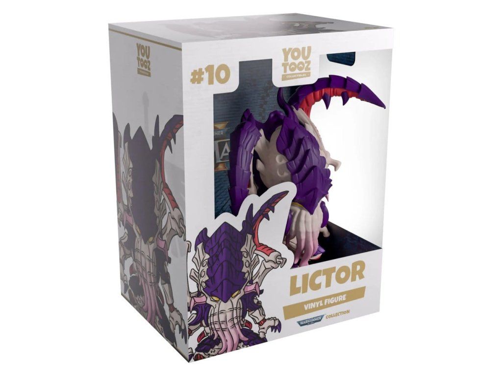 Lictor dorazil do Youtooz, aby prozkoumal okolí! Počkejte… proč to dělá?! Plíží se vpřed, vysoký 13 cm, s hluboce žlutýma očima vykukujícíma zpod tmavě fialového krunýře, který přechází přes hlavu, táhne se po zádech a končí v silném stočeném ocase. Z jeho tváře visí dlouhá krmná chapadla s růžovými špičkami, připravená vyjmout mozek další oběti. S bledým, kostnatým tělem a tmavě červenými šlachami sahají po stranách drápovité ruce, zatímco z ramen se vysouvá dvojice děsivých srpovitých drápů. Ale počkejte, co to? Lictor použil svůj chameleonský krunýř, takže má 1 ze 6 šanci být chase průsvitnou verzí, která ho (většinou) činí neviditelným! Risknete své štěstí, abyste získali super nenápadného Lictora?! Na vnějším obalu je figurka umístěna uvnitř zlatého oblouku, zatímco tmavě modré vnitřní pozadí má zlaté linky kolem okraje. To pokračuje i na bílo-černém ochranném návleku, kde je figurka viditelná skrz velké průhledné okénko na přední straně balení. Tento sběratelský kousek je zasílán v matném, raženém ochranném vnějším obalu a v plastovém obalu na míru pro maximální ochranu při přepravě. O hře Space Marine 2 (Warhammer 40,000): Space Marines 2 je videohra vyvinutá společností Saber a vydaná společností Focus Entertainment. Hra se odehrává v rozsáhlém vesmíru Warhammer; hráči ovládají poručíka Tituse z Ultramarines, který bojuje s hejnami Tyranidů, aby znovu získal ztracené světy pro Impérium lidstva.