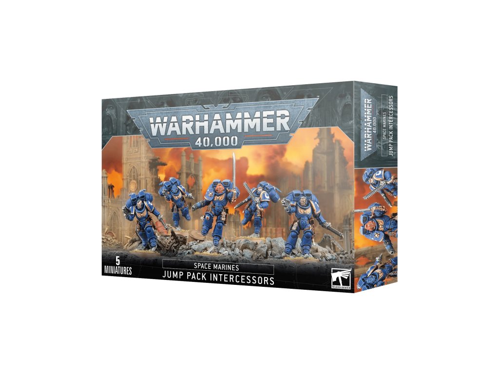 Sada Warhammer 40000: Space Marines - Jump Pack Intercessors obsahuje 5 plastových miniatur. Miniatury nejsou složené ani nabravené.