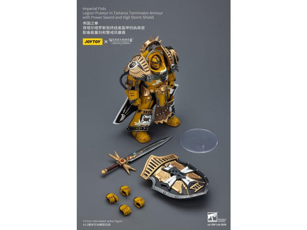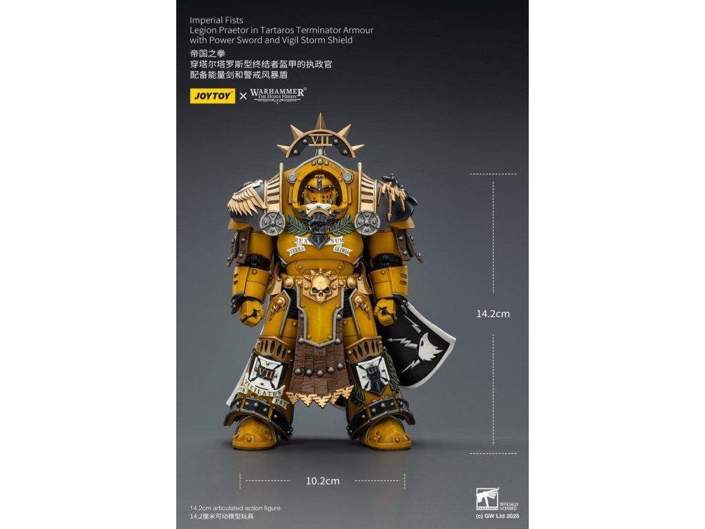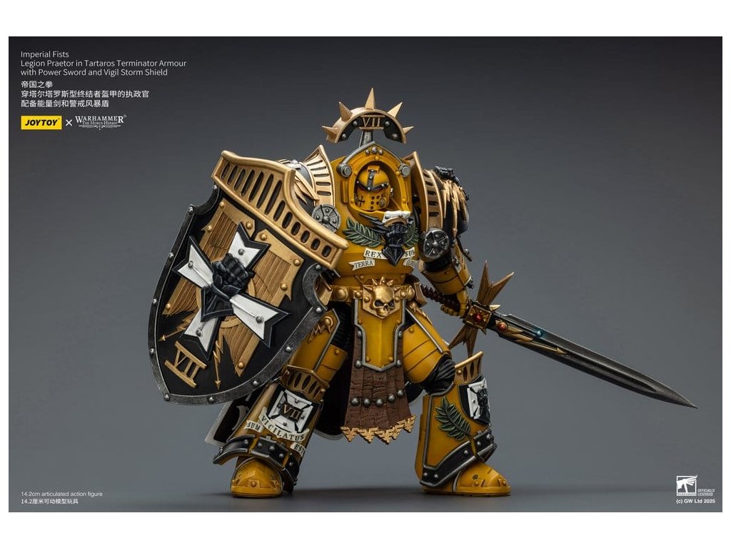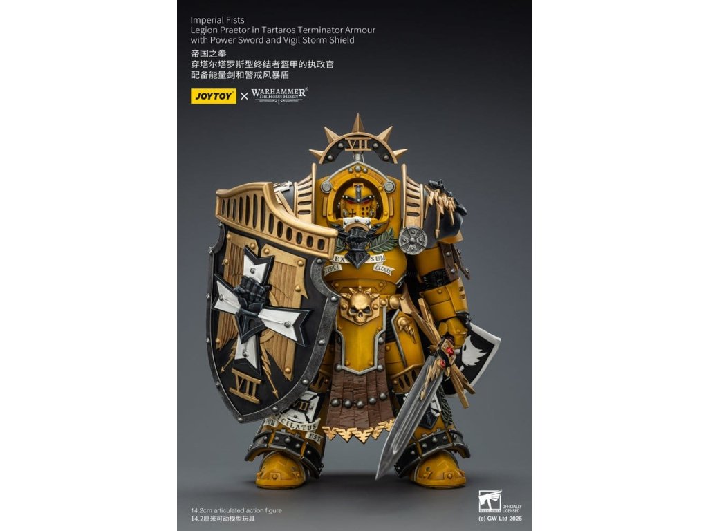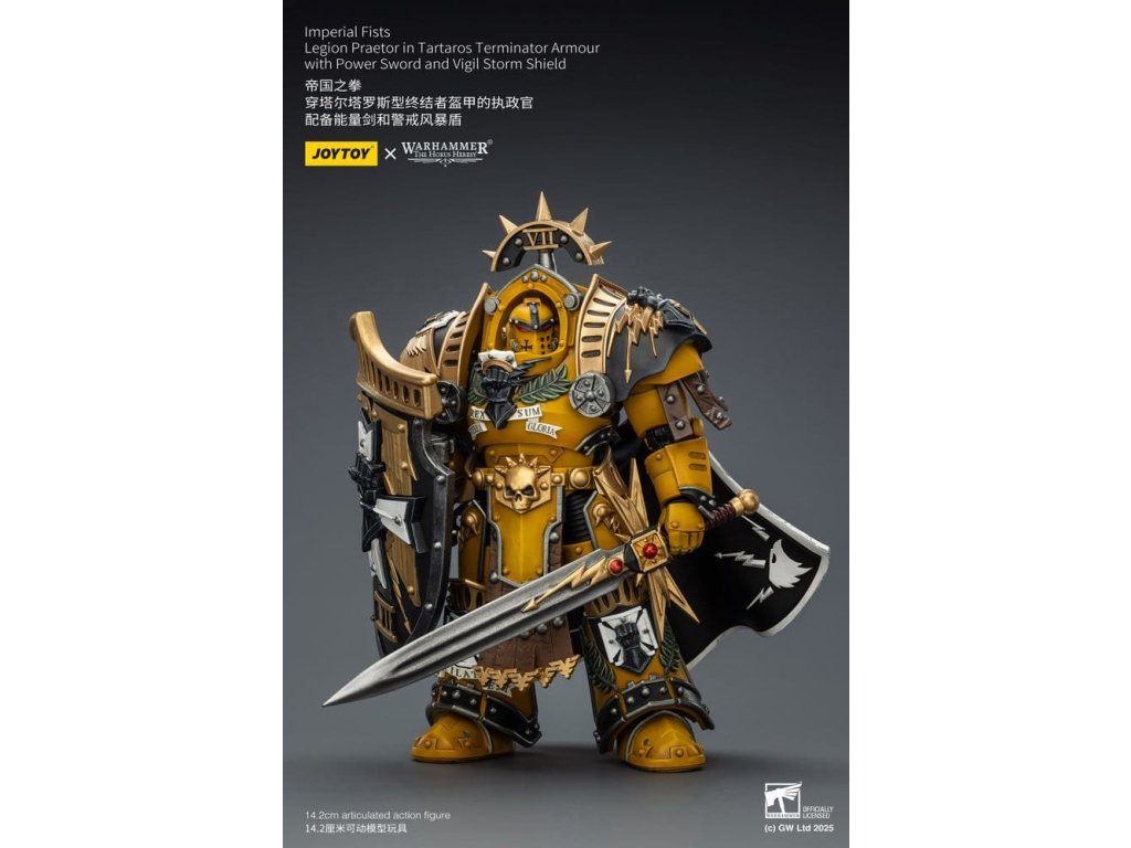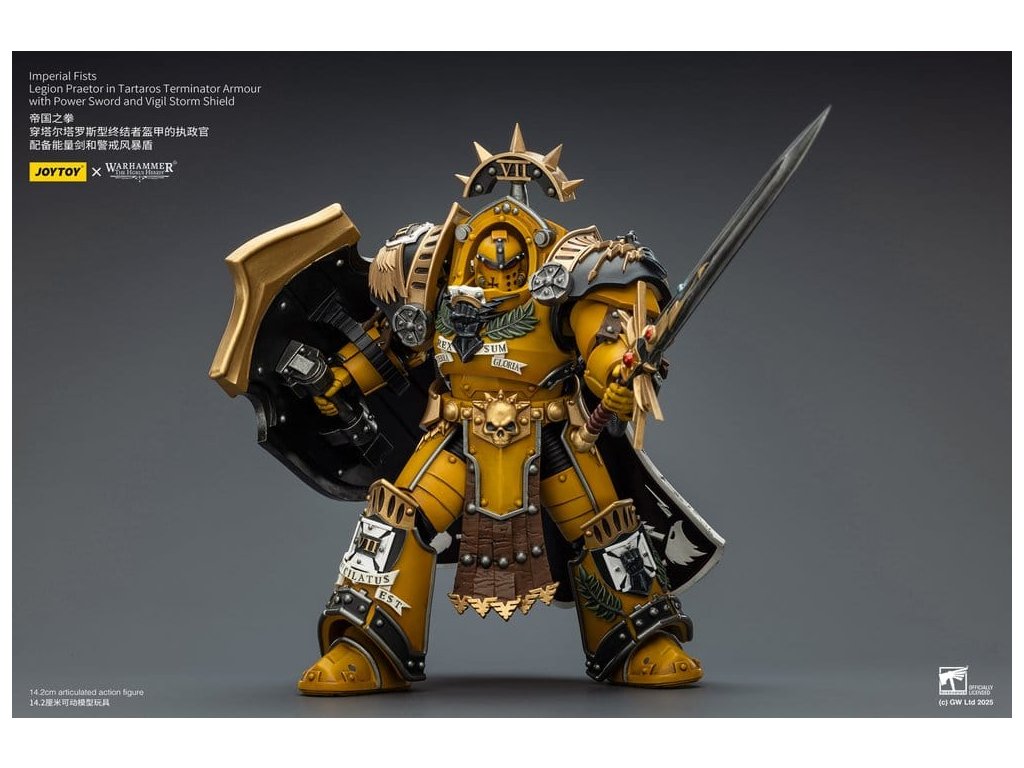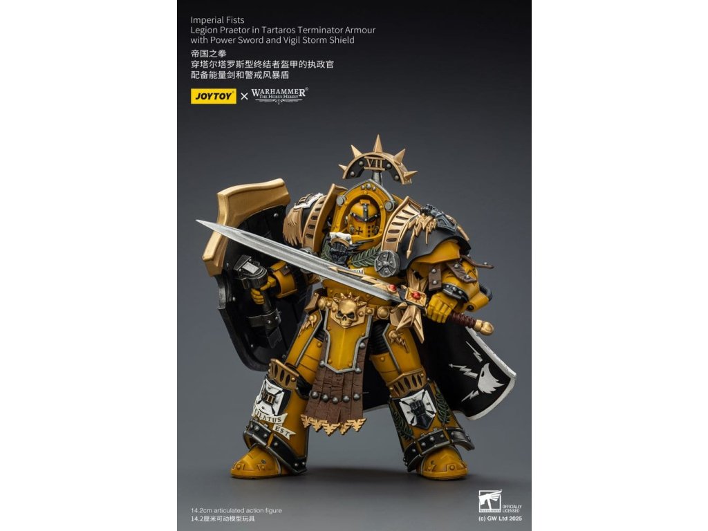 Warhammer Imperial Fists akční figurka Legion Praetor in Tartaros Terminator Armourwith Power Sword and Vigil Storm Shield 14 cm