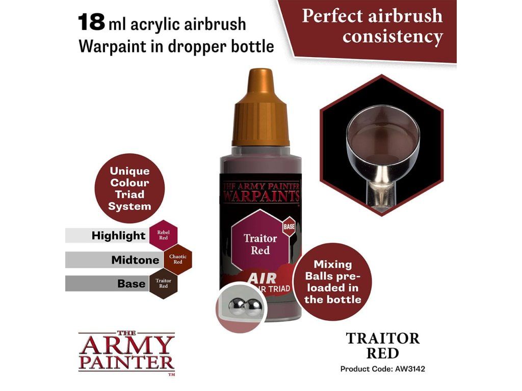 Vysoce kvalitní akrylová barva Warpaints Air Traitor Red určená pro aplikaci stříkací pistolí - airbrush. Vhodná pro miniatury jakéhokoliv druhu. Obsahuje 18 ml barvy.