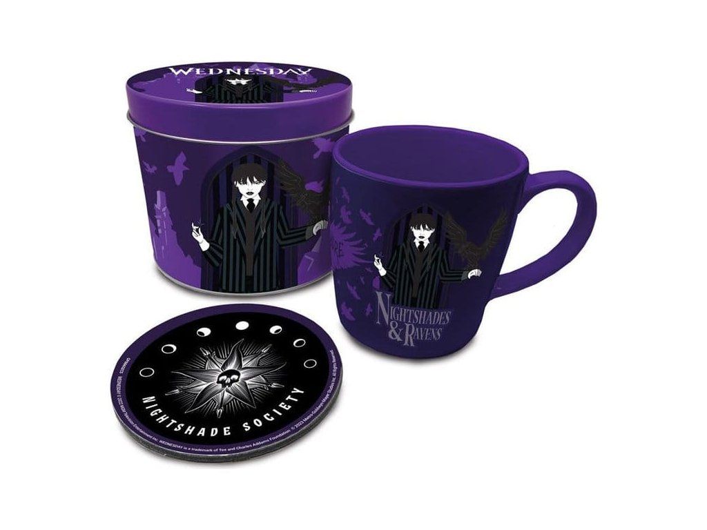 Oficiálně licencovaná dárková sada od Pyramidu z licence Wednesday s motivem Nočních stínů a havranů.