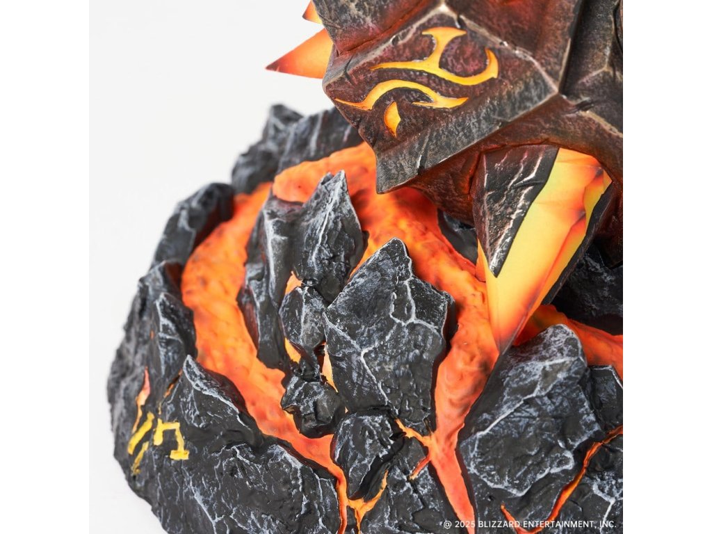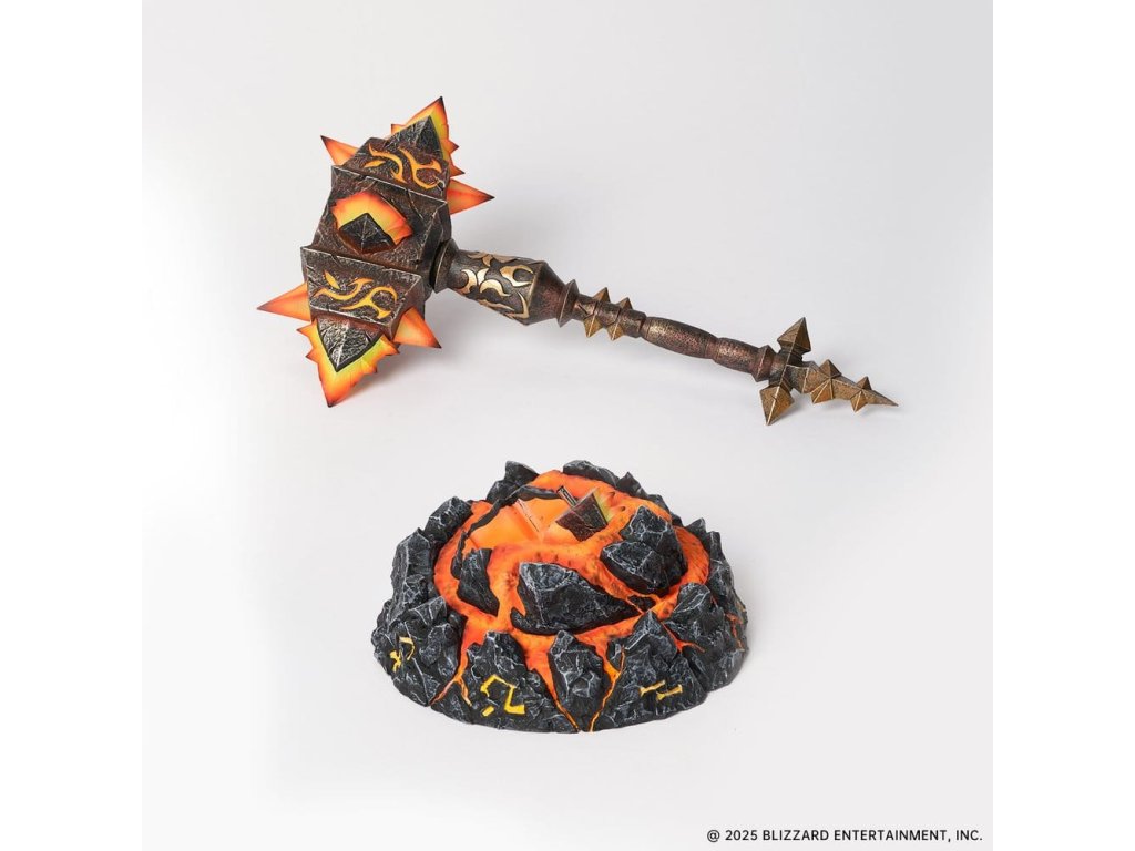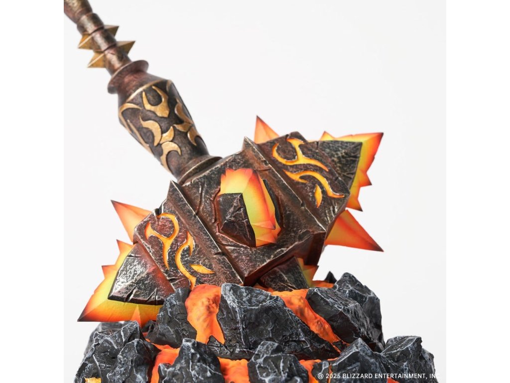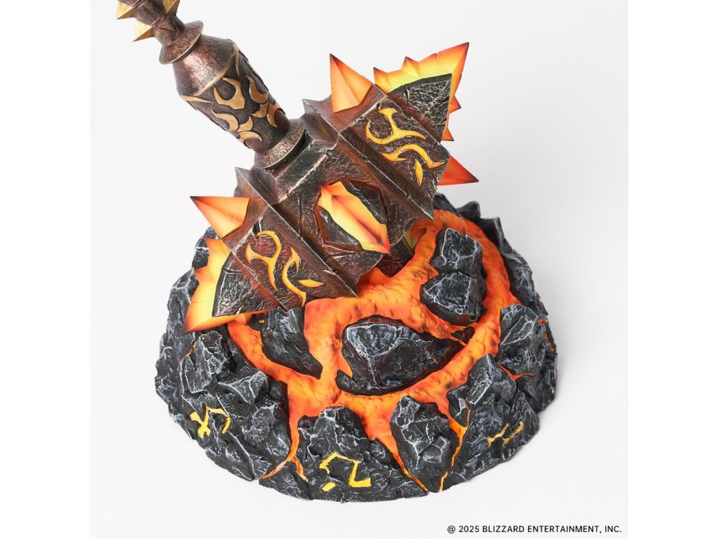 Přineste pálivou sílu Ohnivých zemí na svou plochu s touto sběratelskou replikou Sulfuras, Ruky Ragnaros – jedné z nejikoničtějších legendárních zbraní v historii World of Warcraft. Sochařen s výbušnými, hrozivými detaily, tahle replika ztělesňuje surovou sílu Ragnaros. Expertně provedený gradientový nátěr přechází od oslnivého žlutého jádra k planoucím červeným špičkám a znovu vytváří vzhled roztaveného žáru. Základna má design popraskané lávy, vytváří dramatickou scénu, jako by zbraň právě narazila do země. Vestavěné LED osvětlení jak v palici, tak v základně rozsvítí efekty magmy, když je zapnuto, a vytváří sopečné světlo, které vyzařuje primitivní energii Azerothu. Tato replika je určena speciálně pro vystavení na stole a dodává vaší herní sestavě epickou a pohlcující atmosféru, aniž by zabrala příliš mnoho místa. Každá soška má na základně jedinečné, ručně psané číslo limitované edice, což zvyšuje její sběratelskou hodnotu. Nepropásněte šanci přidat tuto repliku Sulfuras, Ruky Ragnaros do své sbírky World of Warcraft dnes! Velikost: 24,6 x 20,1 x 14,5 cm, kladivo: 24,9 x 14,5 x 15,5 cm, základna: 7,1 x 14,5 x 14,5 cm.