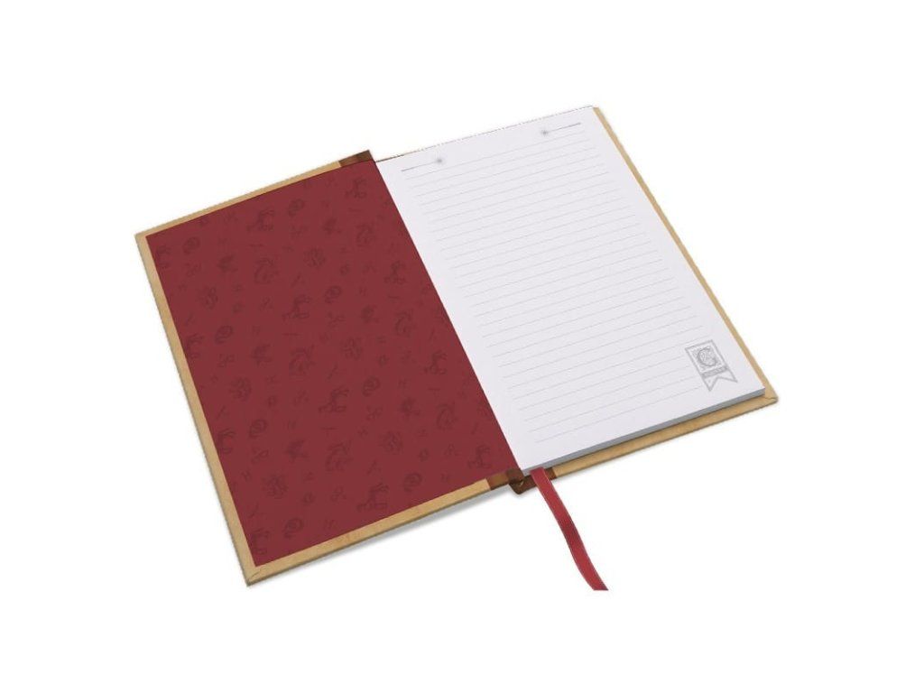 Zápisník v pevných deskách s erbem Bradavic a překříženými kouzelnickými hůlkami, toť vše, co potřebujete do lavic slavné školy čar a kouzel ze světa Harry Pottera! Linkovaný zápisník se záložkou bude skvělým pomocníkem malým i velkým čarodějům.