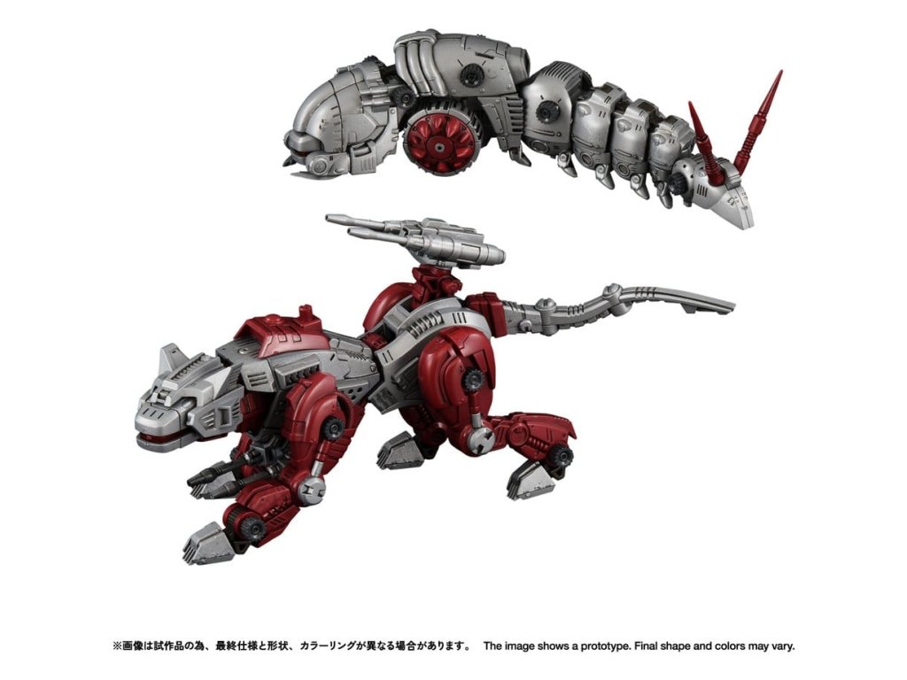 「REALIZE MODEL」1/100 Měřítko Akční plastová modelová řada. 1/100 měřítková akční plastová modelová série, která zlepšuje 'super artikulaci', 'lehkost sestavení' a 'sběratelnost'. Z hlediska uživatele, nejen co se týče počtu dílů, ale také měřítka, designu a struktury, vtěluje každý ideál. Speciálně navržený systém artikulace umožňuje pohyb celého těla, což umožňuje dynamické akční pózy charakteristické pro levhartí a housenkové typy Zoids. Mezi vrcholy patří charakteristický průhledný červený kanopi a věrná reprodukce původního Zenebus barevného schématu prostřednictvím formovaných barev. Součástí jsou dvě figurky pilota (standardní vojáci), které lze umístit do sdíleného kokpitu.
